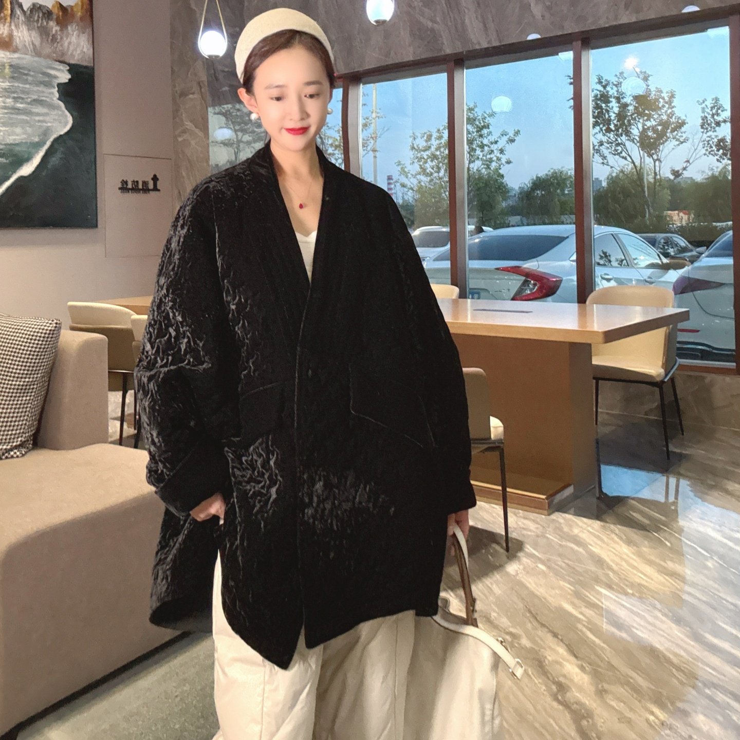 金丝绒棉服女款2025新款宽松中长冬季洋气高级感棉衣外套女不臃肿
