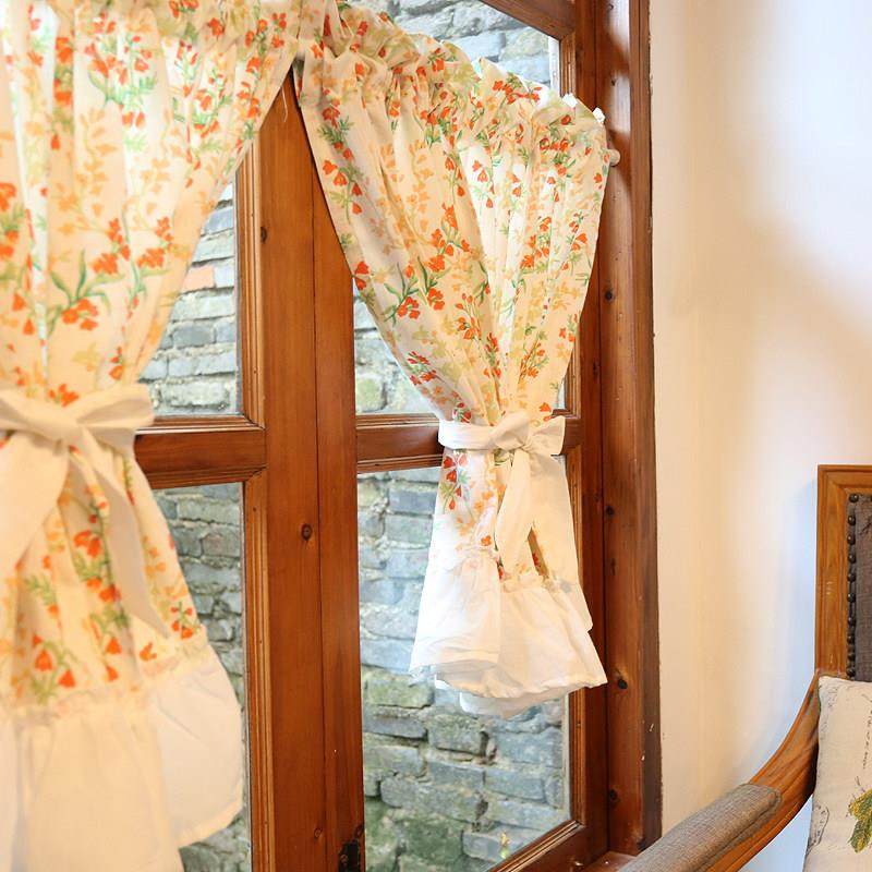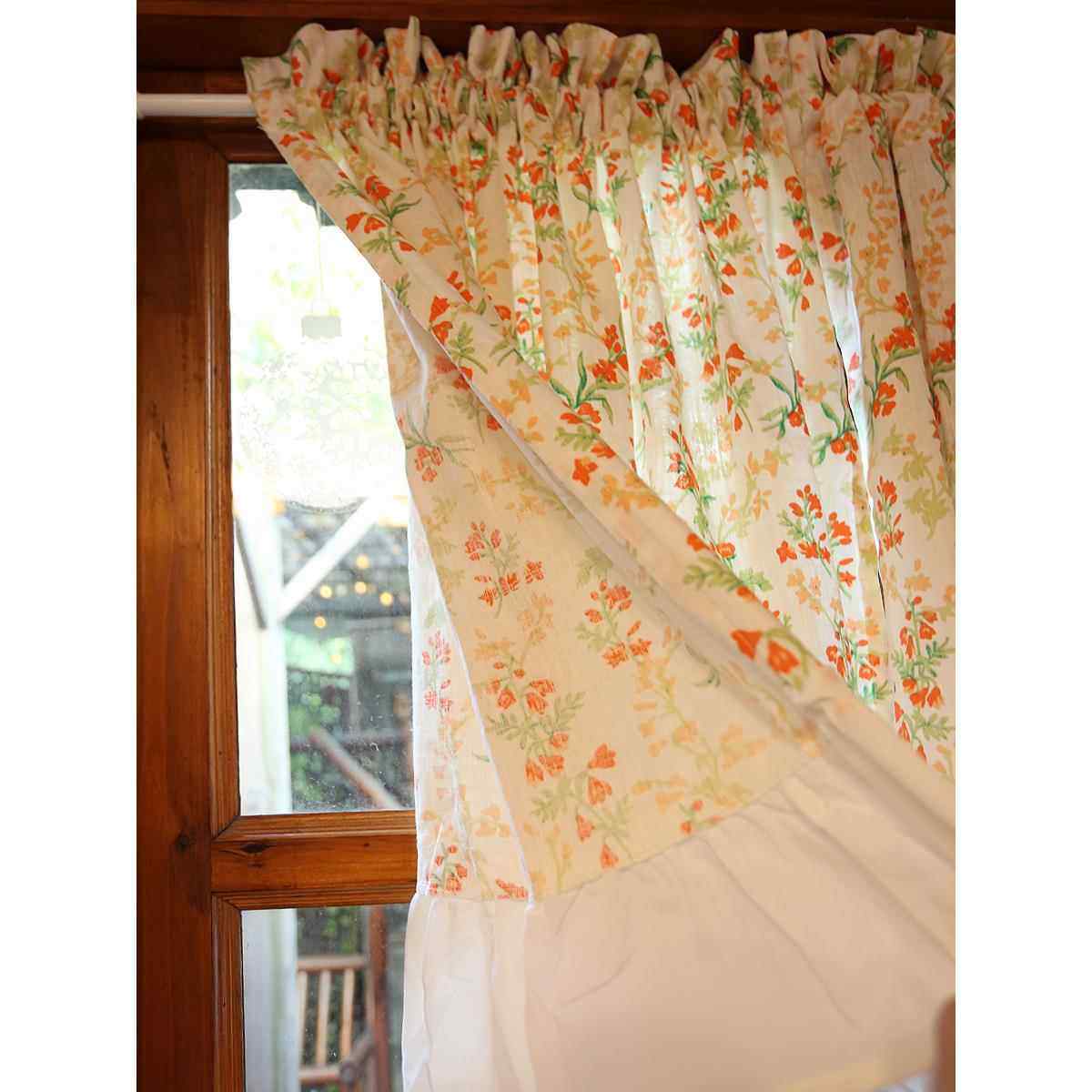 鸢尾乡旅橘色小野花半帘美式门帘穿杆帘柜帘防尘帘咖啡帘半遮光