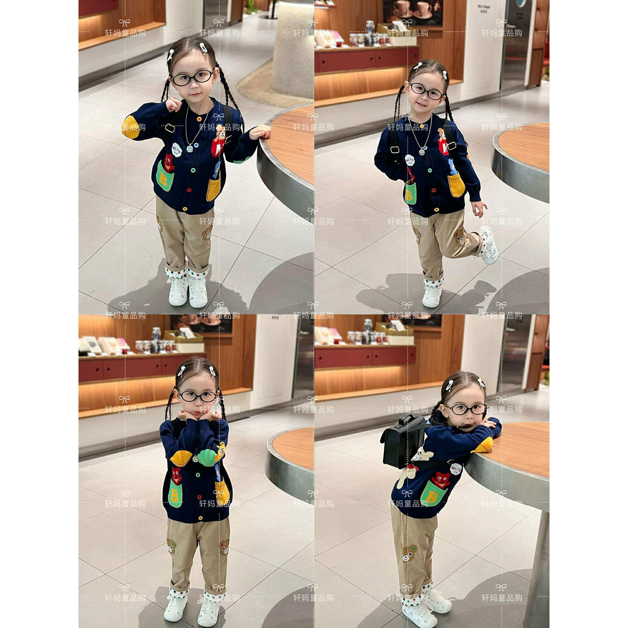 儿童双层毛线毛衣男女童春秋可爱麻子熊开衫毛衣中小童卡通可爱