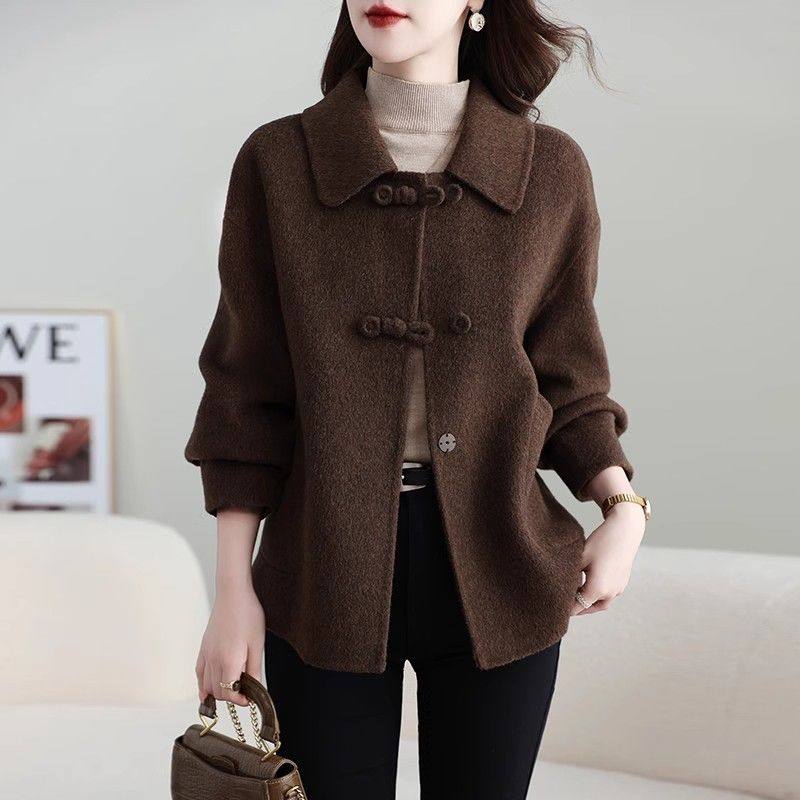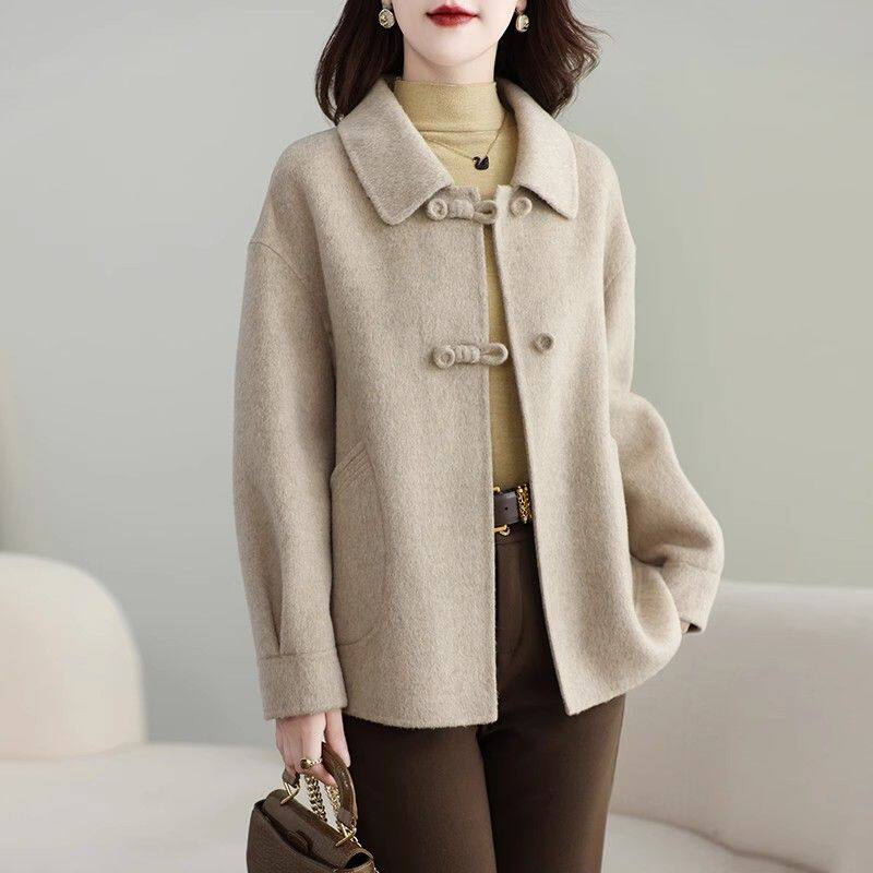 秋冬双面毛呢大衣新款短款高端妈妈小个子毛呢上衣外套时尚宽松女