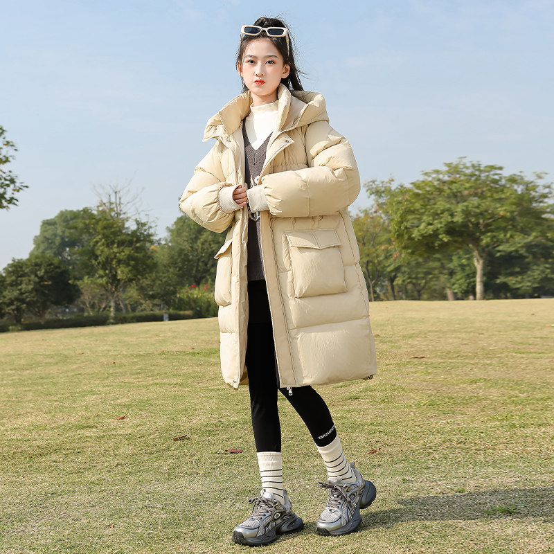 女童羽绒服2024新款洋气冬季儿童韩版初中生大童冬装加厚长款外套