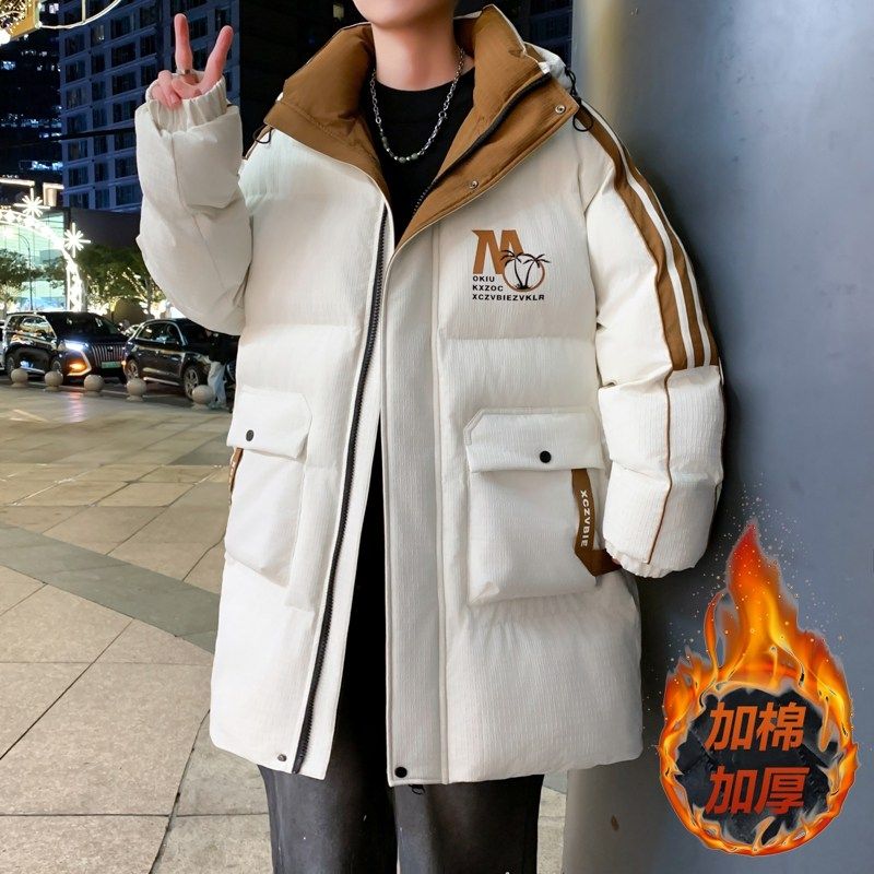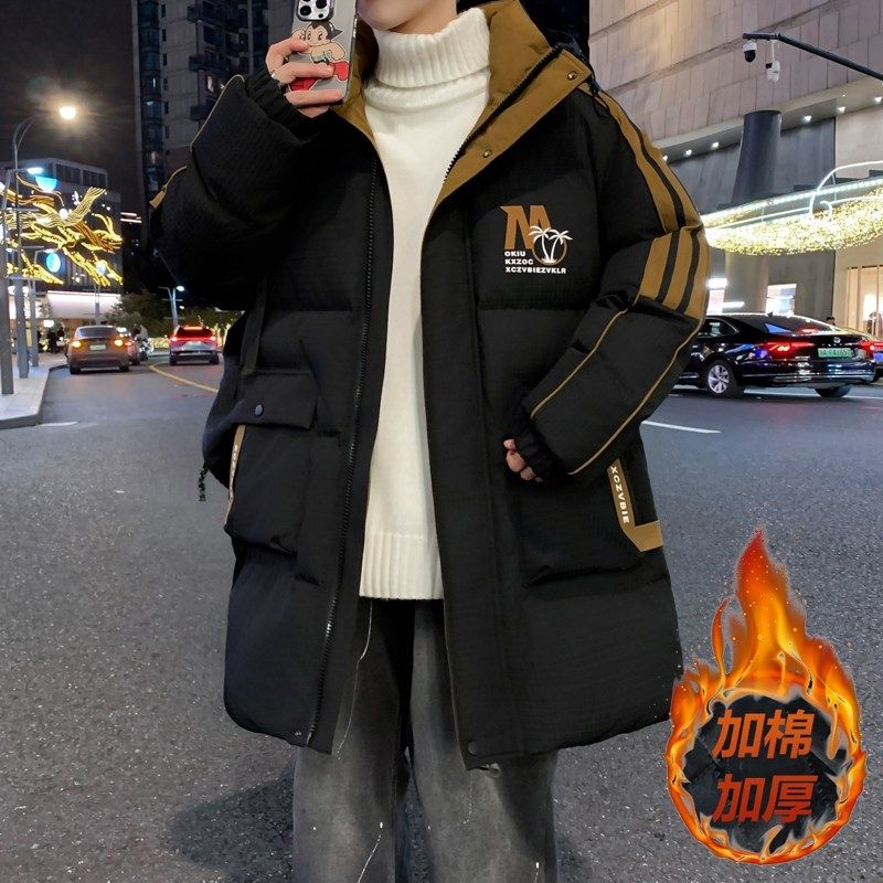 中长款棉衣男款冬季青少年潮牌加厚工装羽绒棉服初中高中学生外套