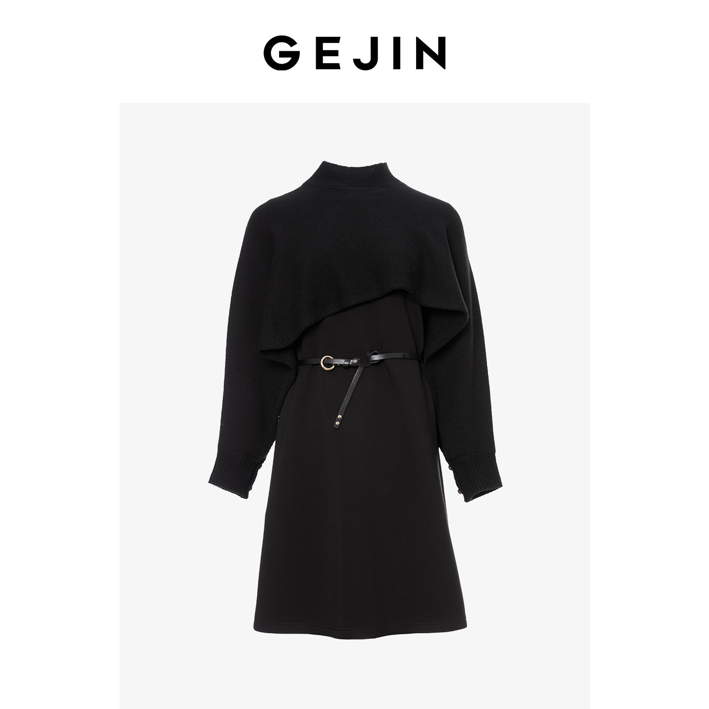 歌锦高级感黑色优雅长袖立领连衣裙女中长款2026年春季设计感裙子