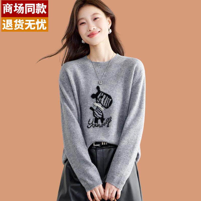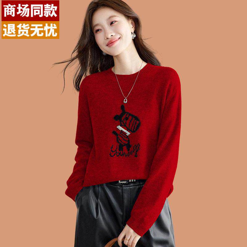 本命年马年红色毛衣女款2026新款内搭可外穿打底衫100%羊毛针织衫