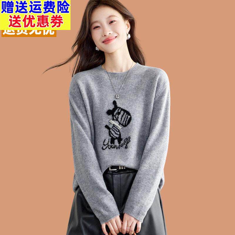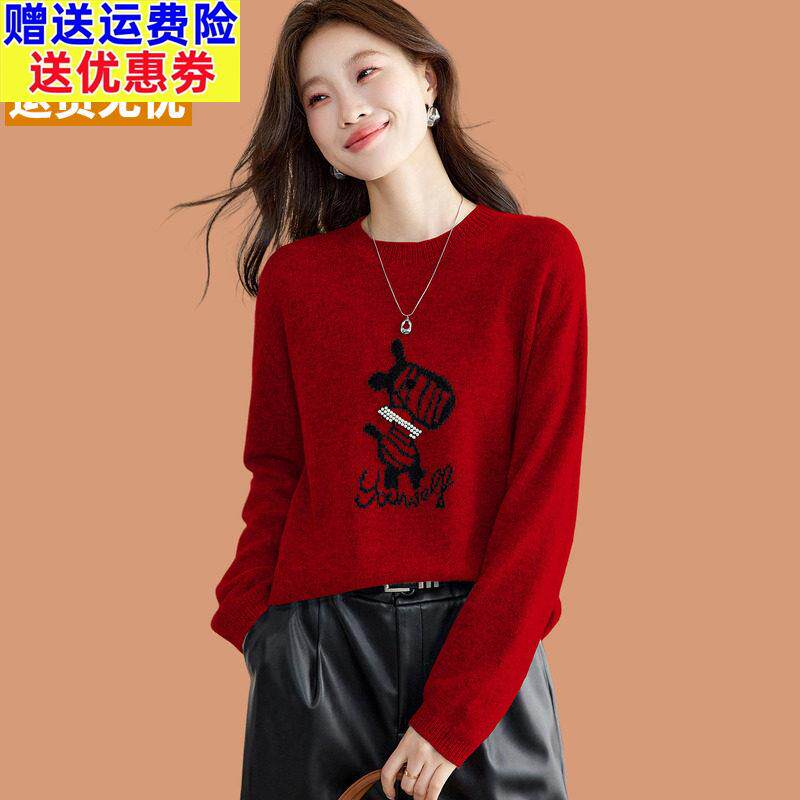 本命年马年红色毛衣女款2026新款内搭可外穿打底衫100%羊毛针织衫