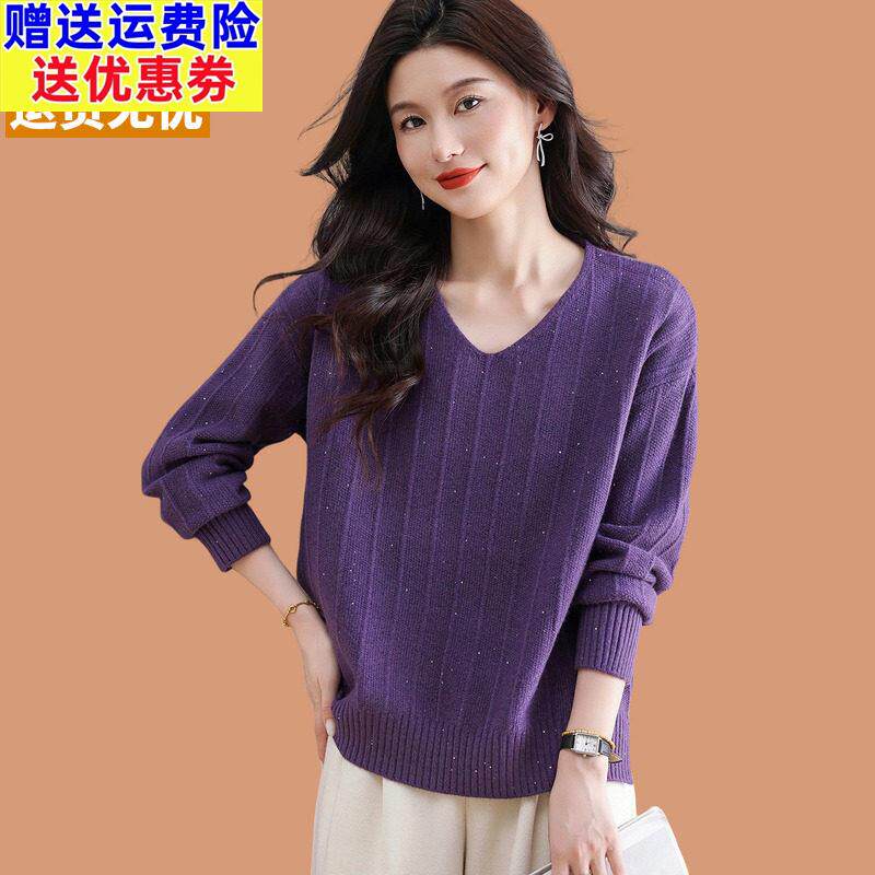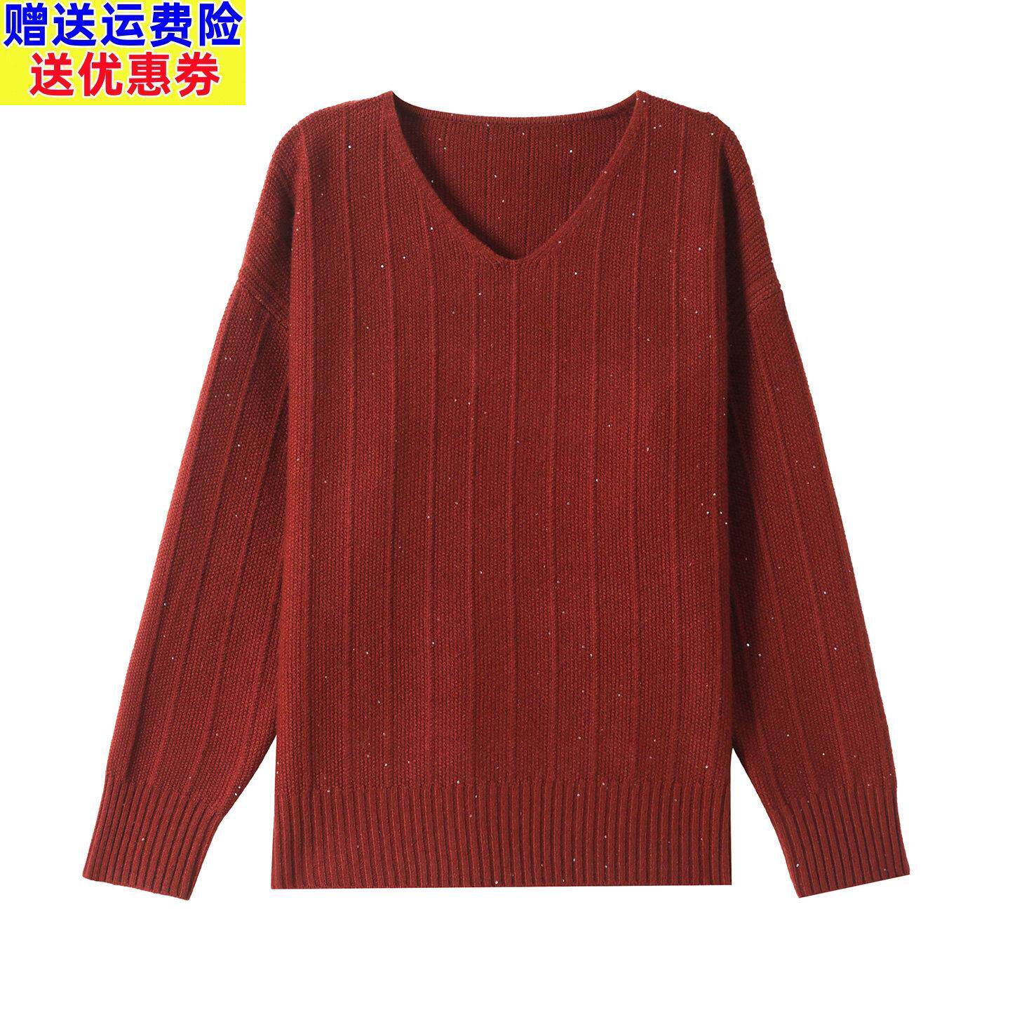 毛衣女款2026新款冬季红色时尚上衣女时髦洋气妈妈v领短款羊毛衫