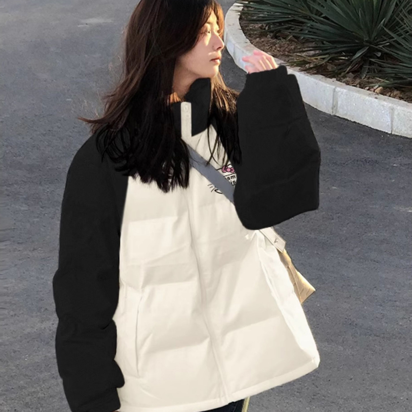 撞色插肩羽绒服女大童2025款冬季初中高中学生加厚保暖学院风外套