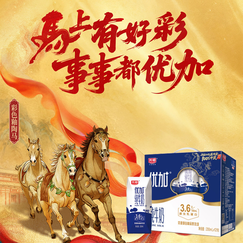 【马年礼盒新年送礼】光明优加3.6克蛋白纯牛奶200ml*12盒早餐奶