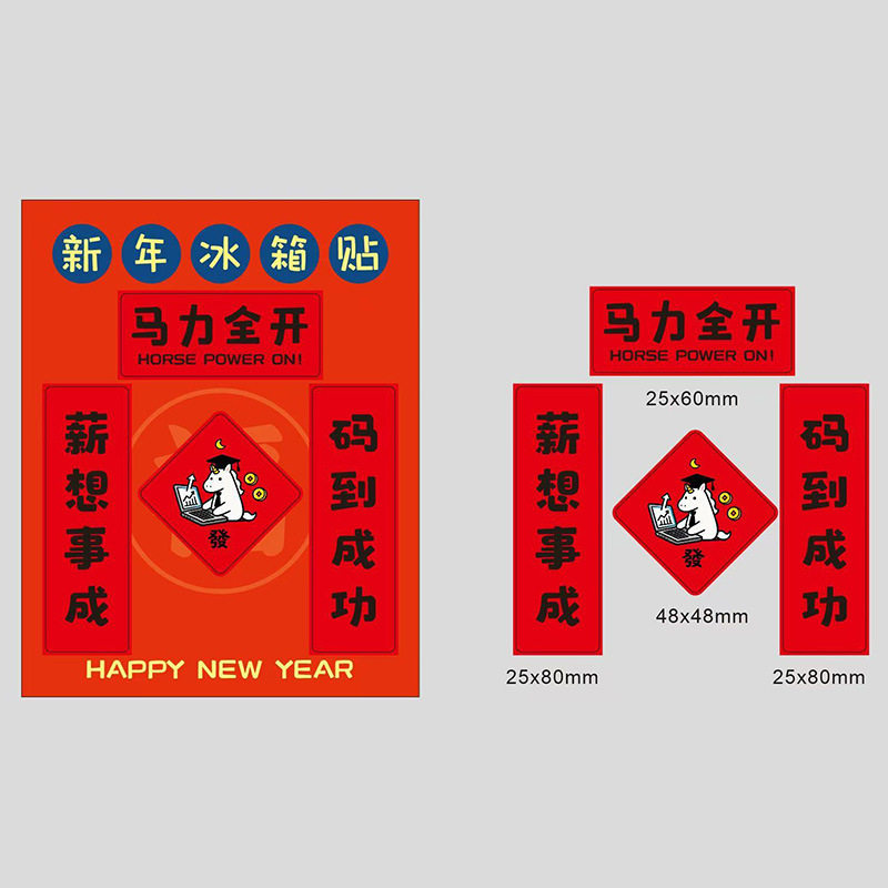 2026马年新款磁吸冰箱贴门贴创意对联车贴年轻人搞笑门把手装饰