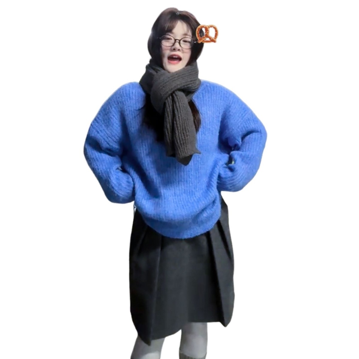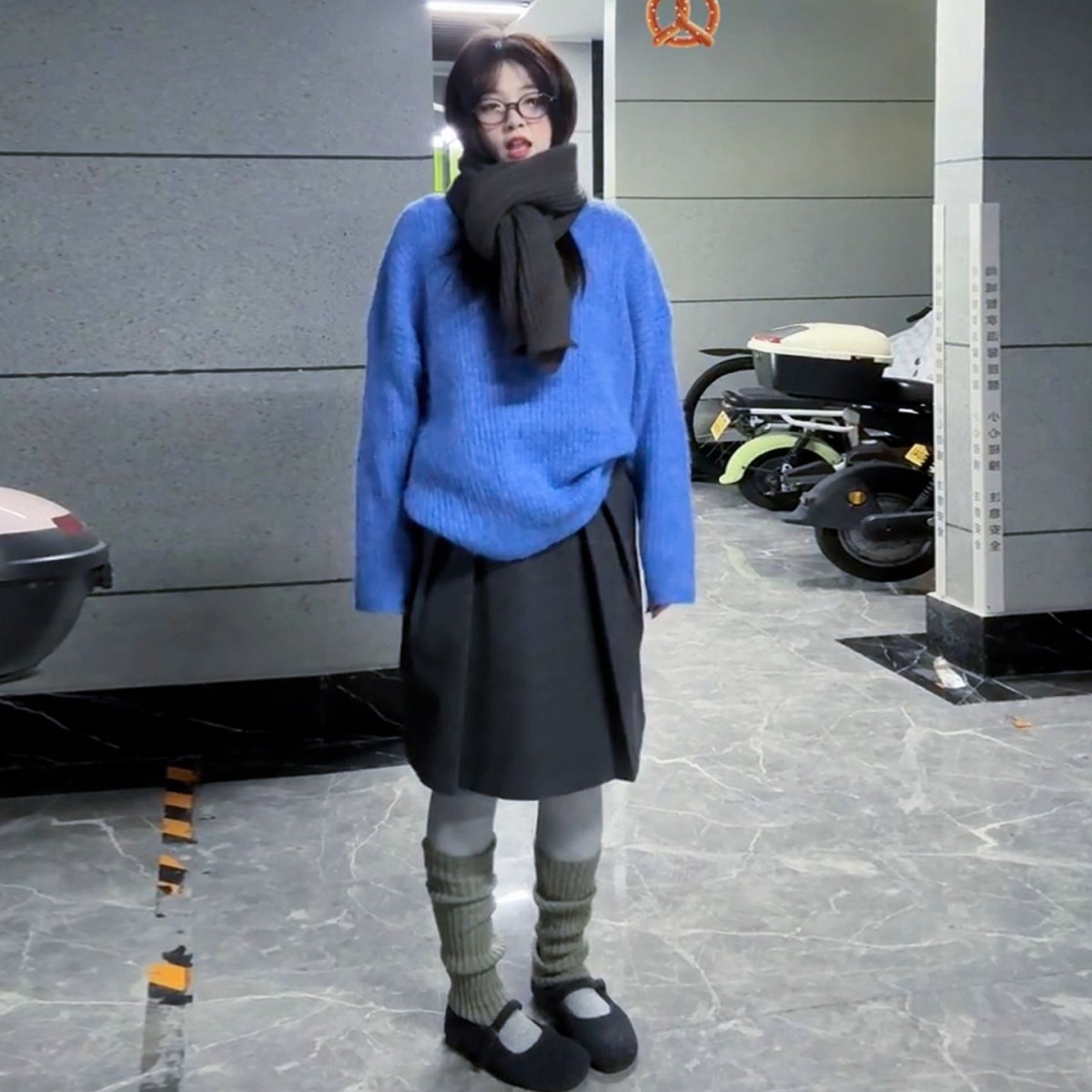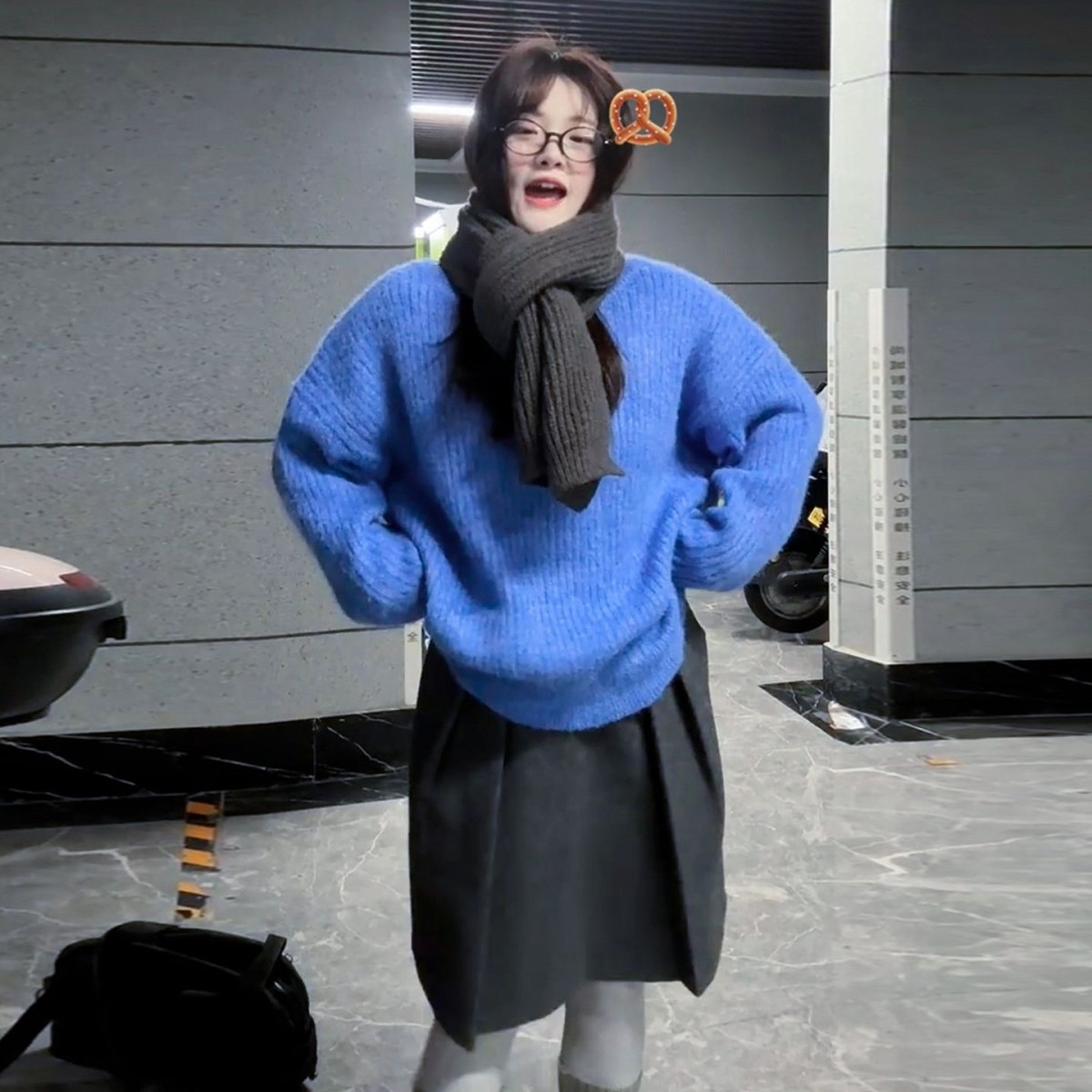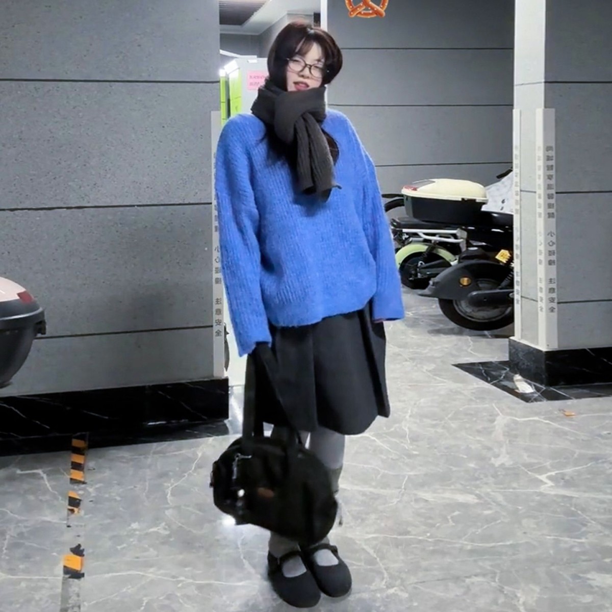 韩系蓝色针织毛衣套装连衣裙子女2025新款秋冬气质宽松一整套穿搭