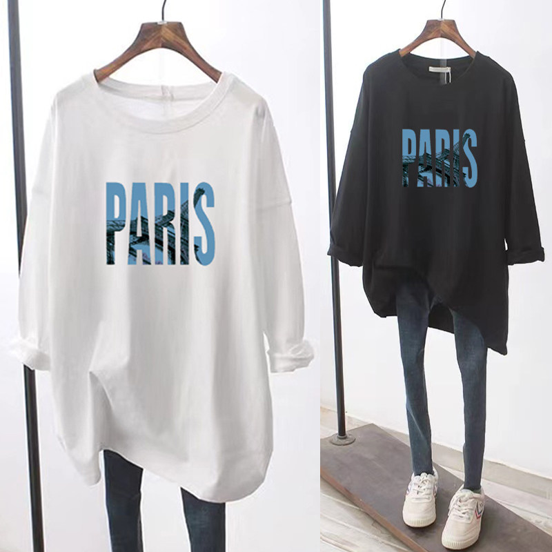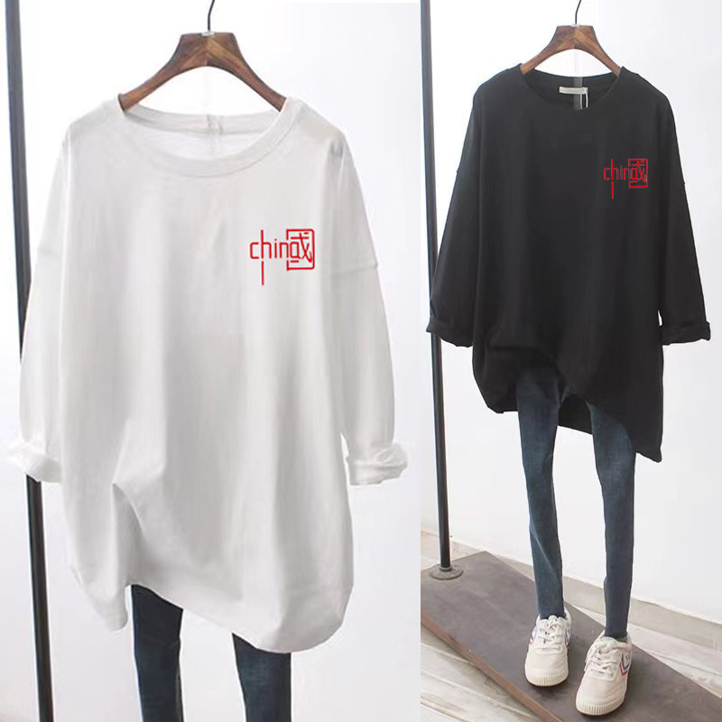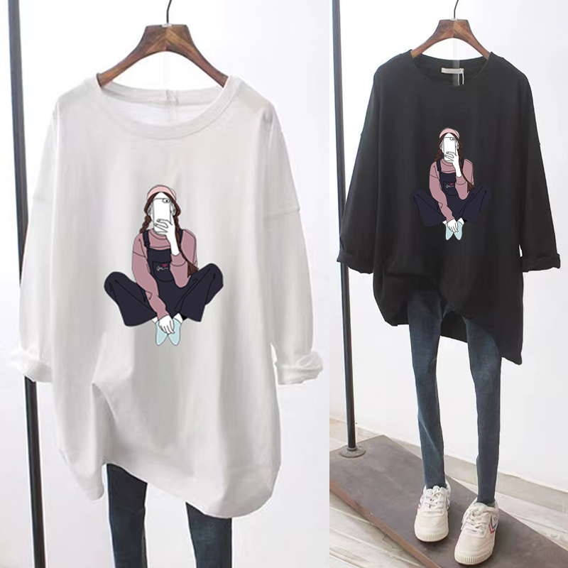 白色长袖T恤裙女春秋中长款宽松显瘦外穿圆领纯棉内搭打底连衣裙