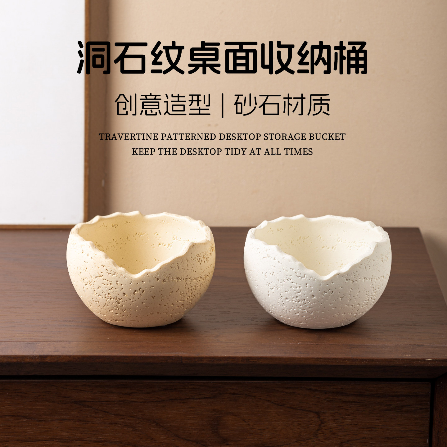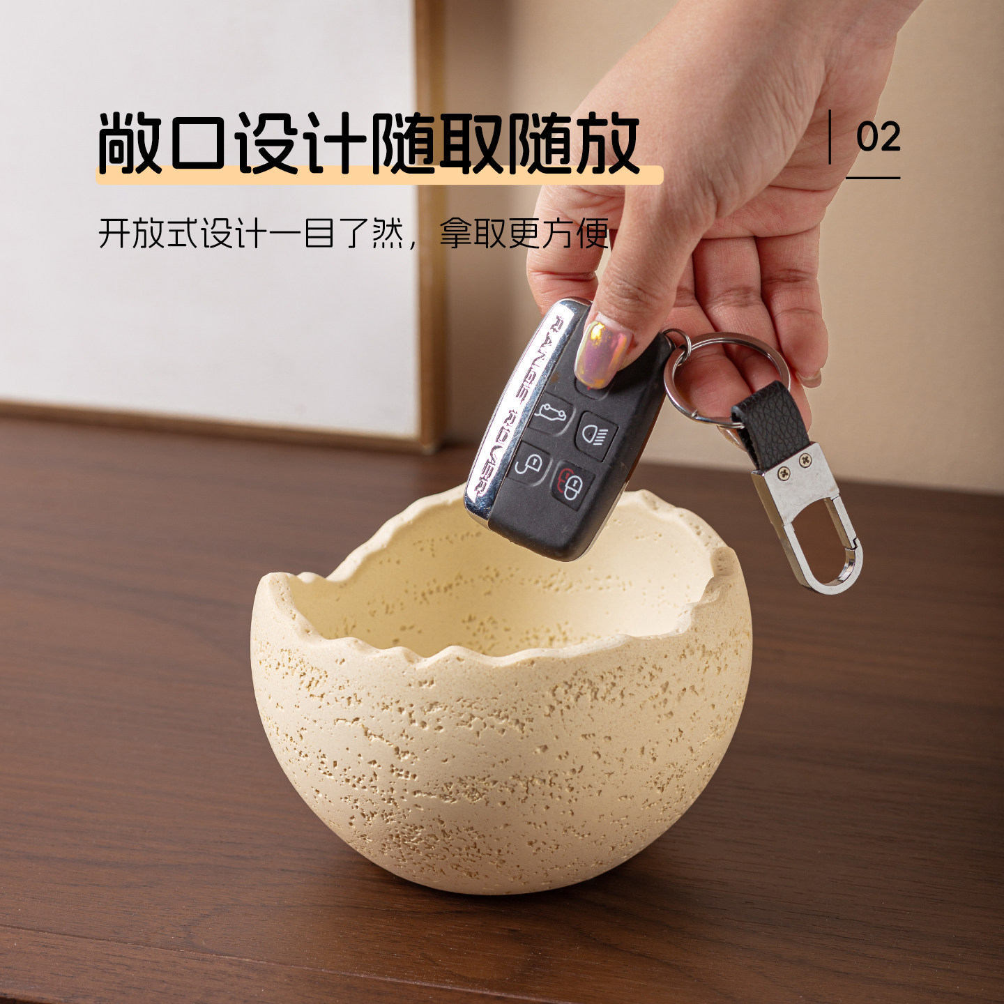 钥匙收纳盒门口进门洞石桌面收纳桶创意摆件高级感入门玄关收纳盒