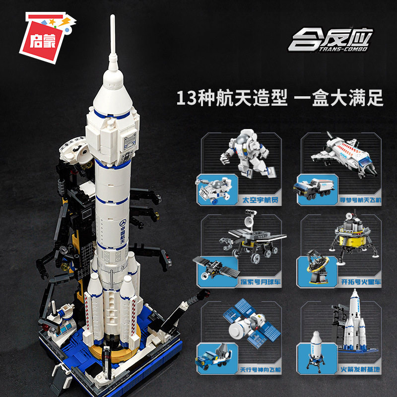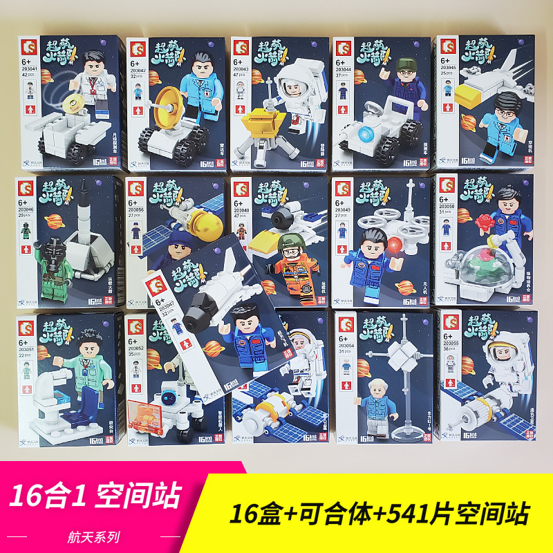 中国航天积木拼装模型森宝航天火箭飞机益智小颗粒拼图儿童玩具男