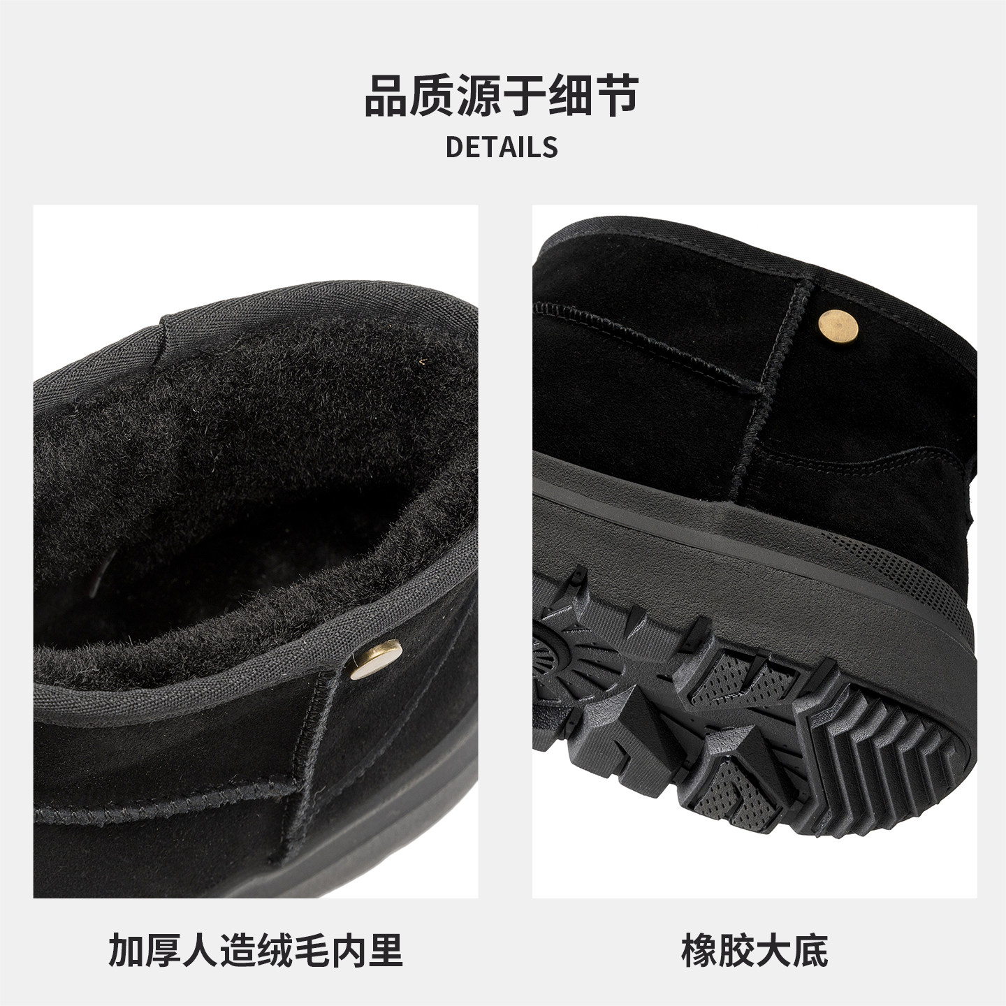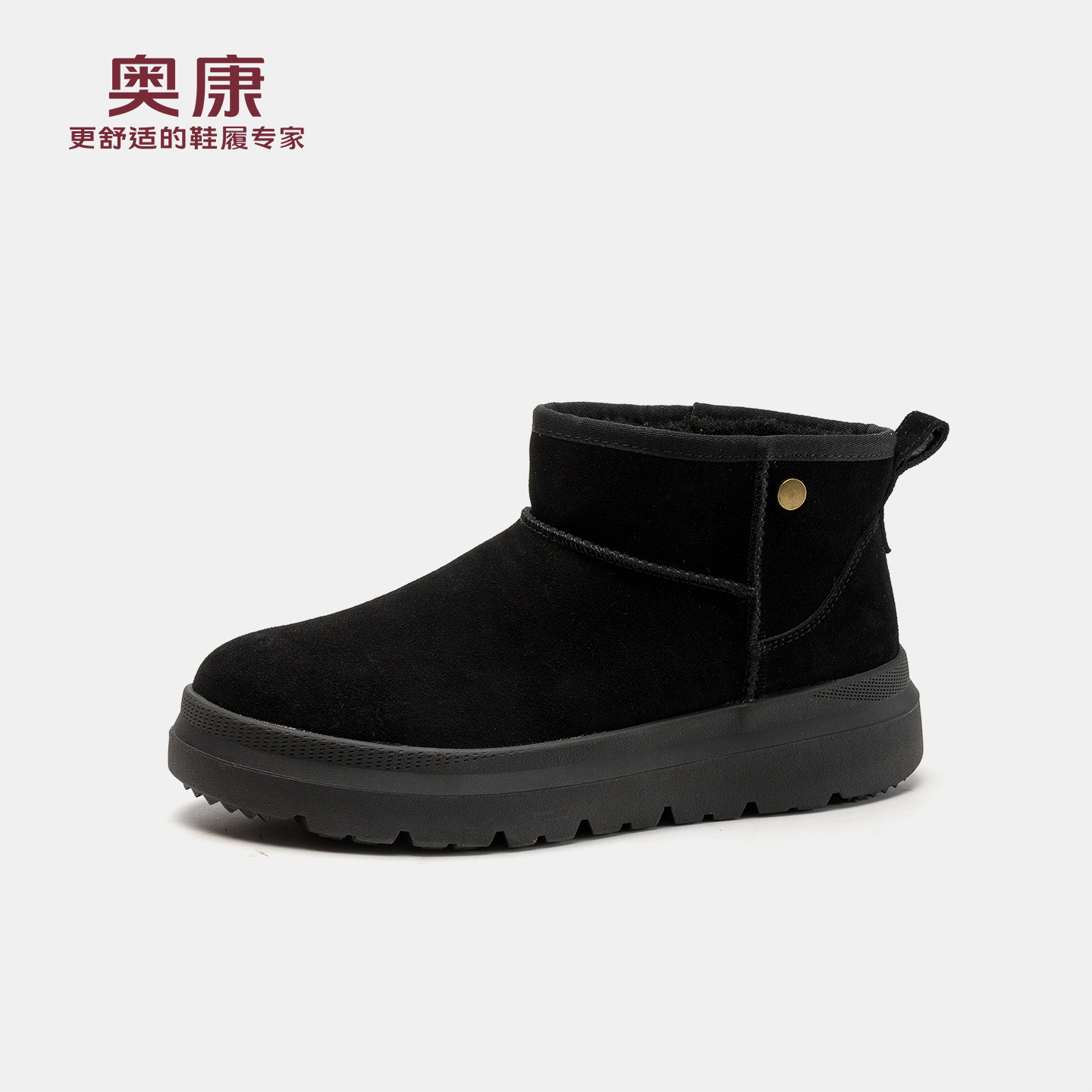 奥康 男鞋2025冬季新款雪地靴加绒保暖短款黑色防滑时尚增高鞋
