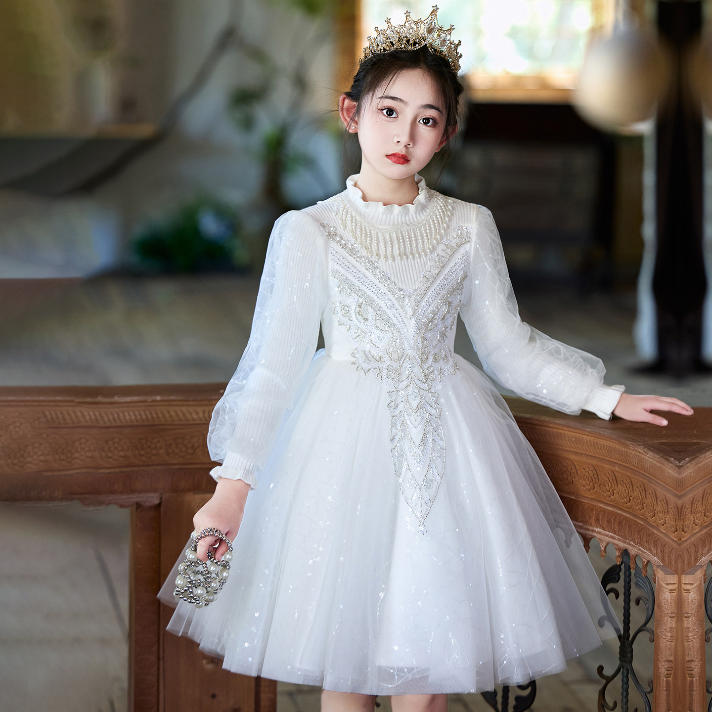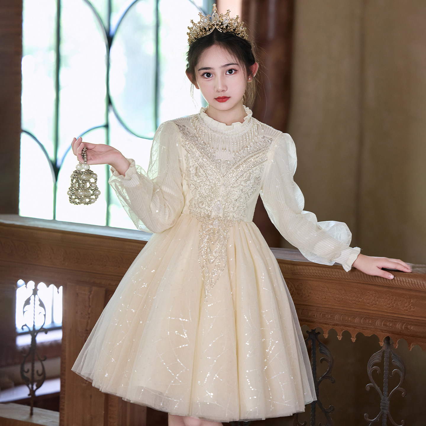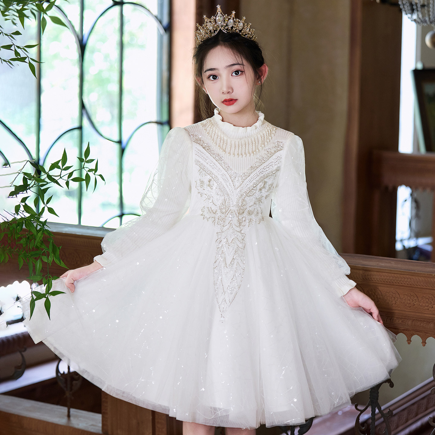 女童连衣裙秋冬款2025新款洋气轻奢小众小女孩生日蓬蓬纱高端礼服