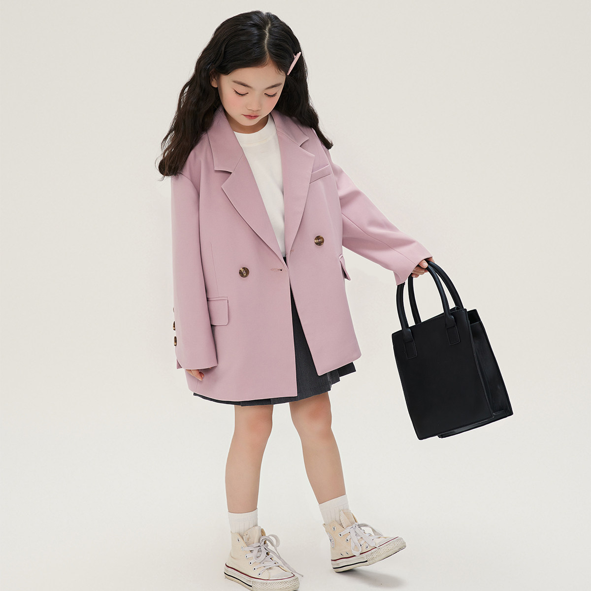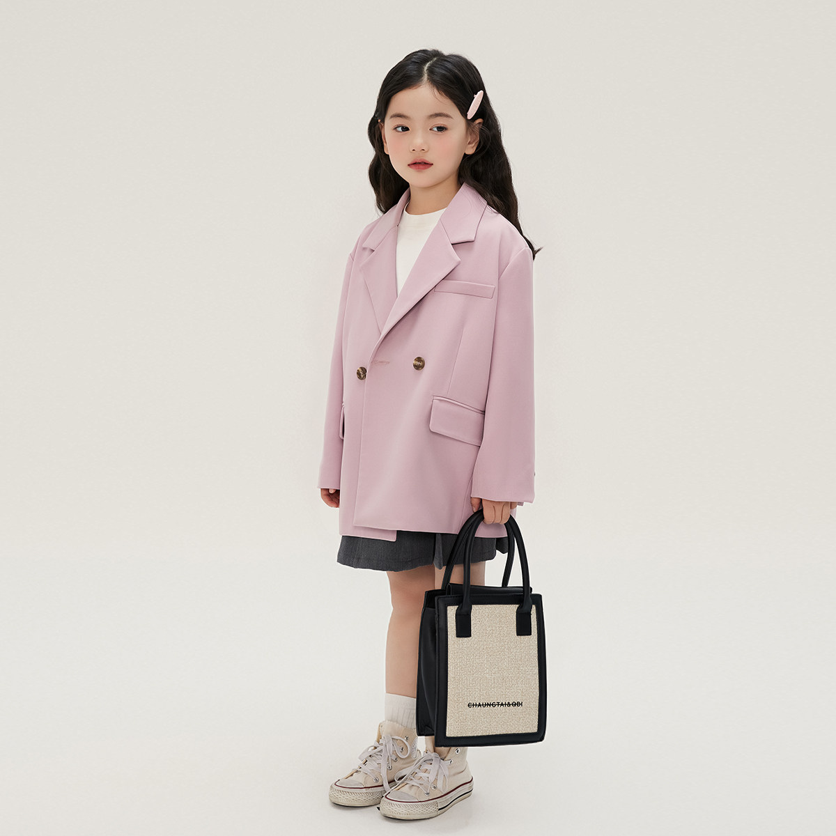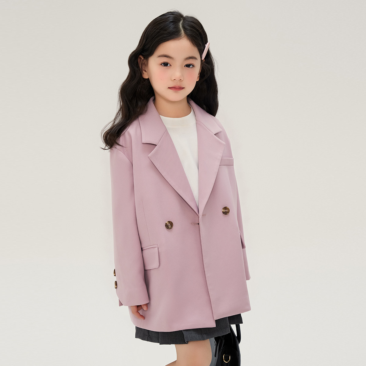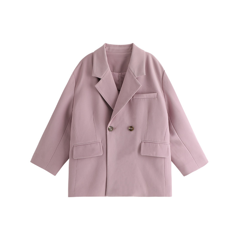 布丁哈鲁春装女童粉色西装外套2026春秋季新款洋气儿童休闲百搭