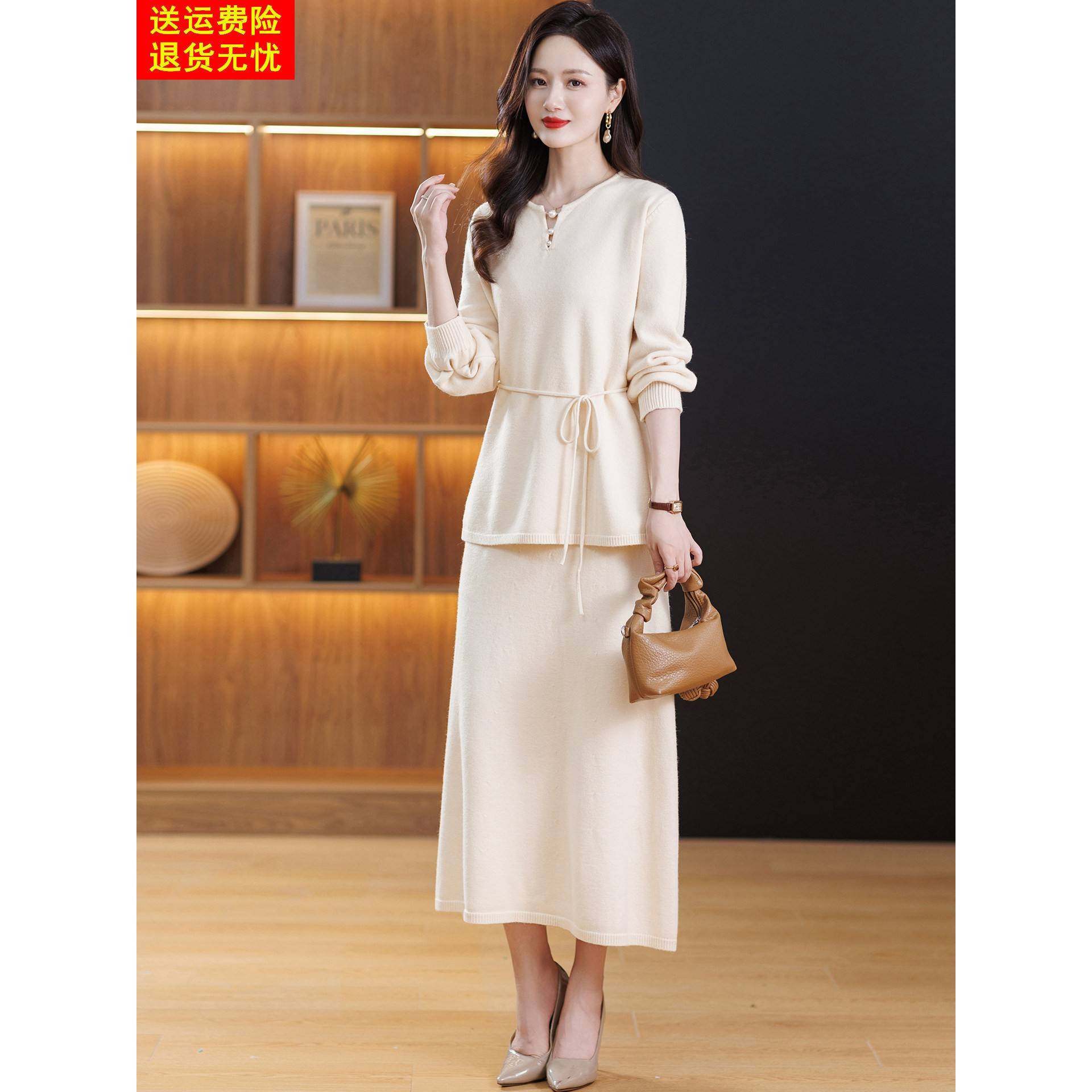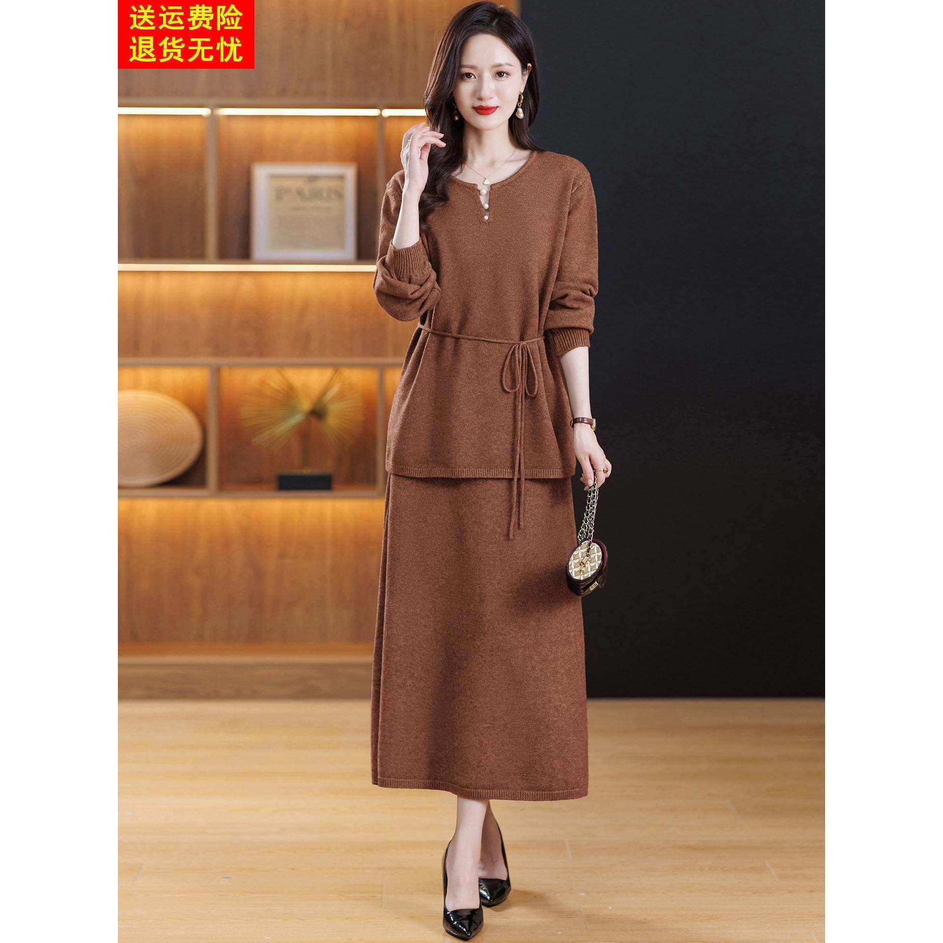 轻奢高级感秋冬款2025新款套装裙女时尚气质羊毛针织连衣裙两件套