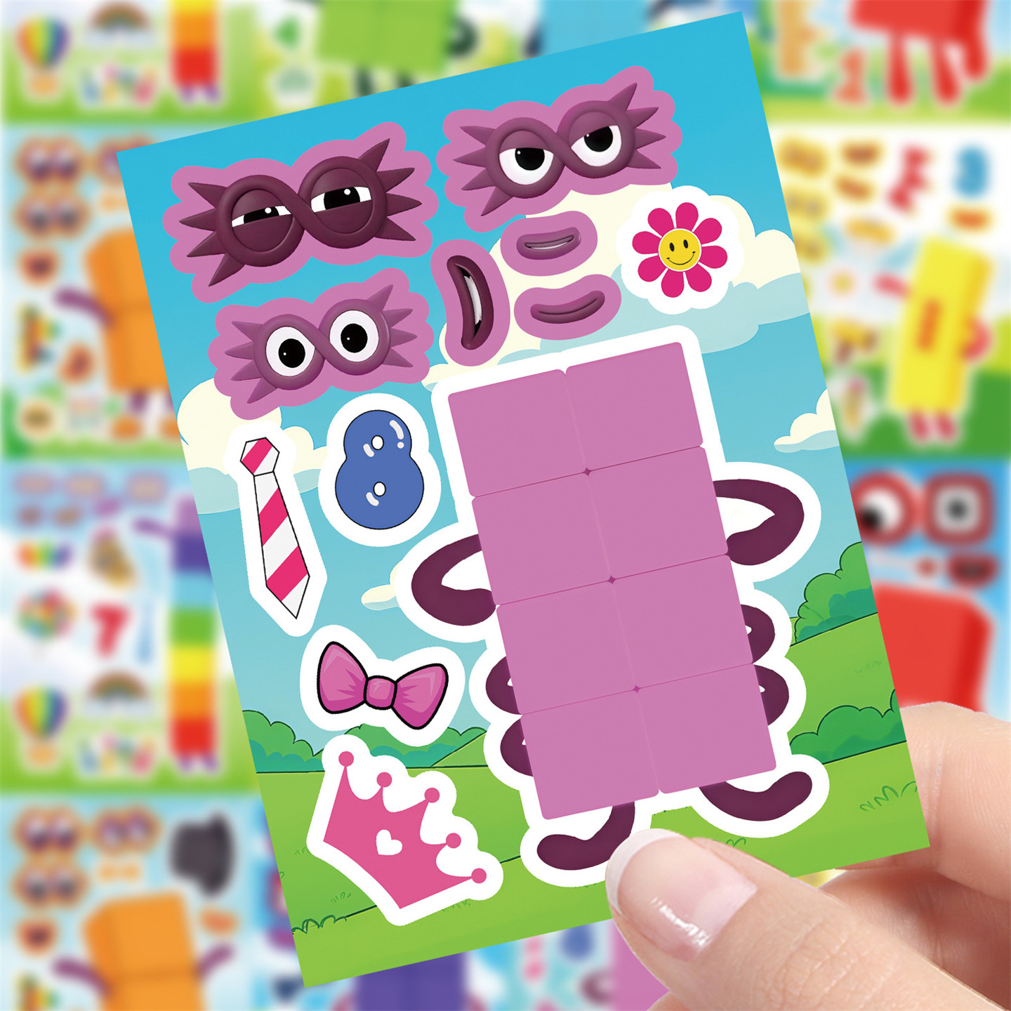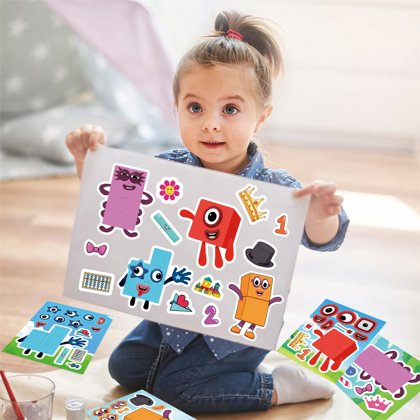 311线报网描述:8张/套儿童卡通数字积木方块动画益智贴纸