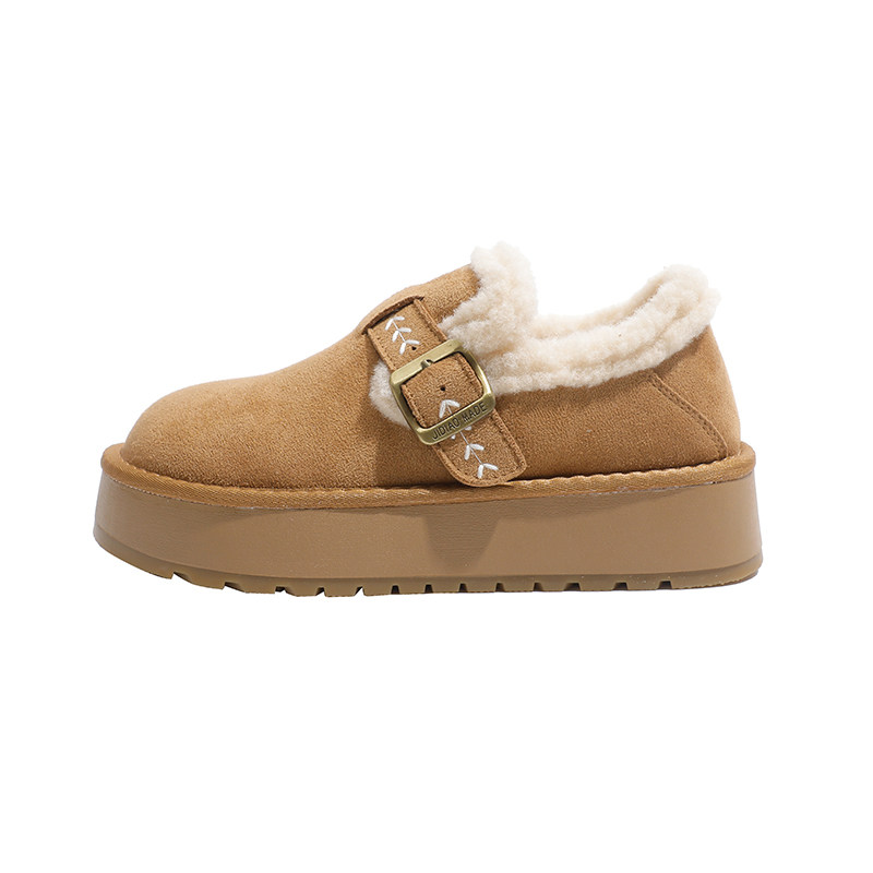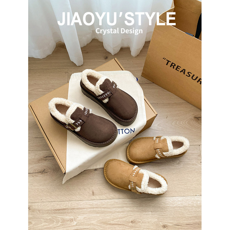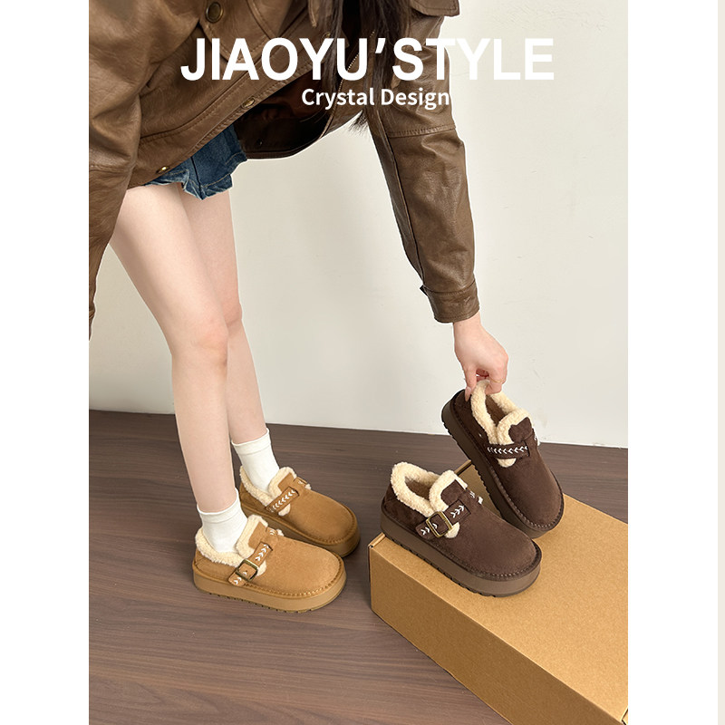 真皮~骄屿厚底勃肯鞋2025新款冬季毛毛鞋加绒加厚雪地靴保暖棉鞋