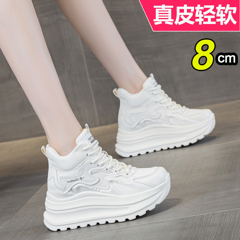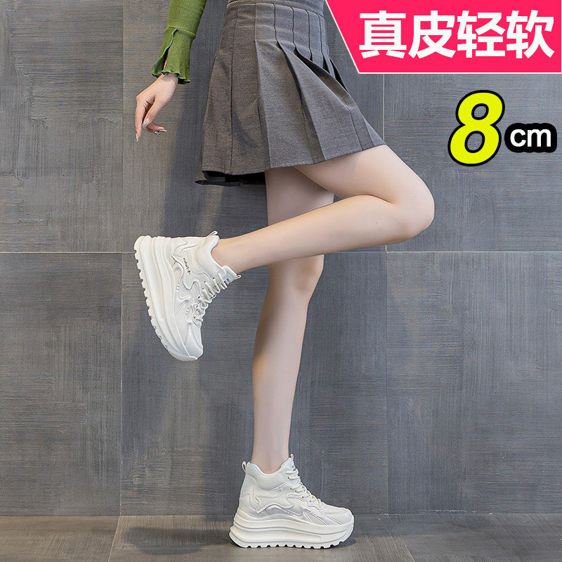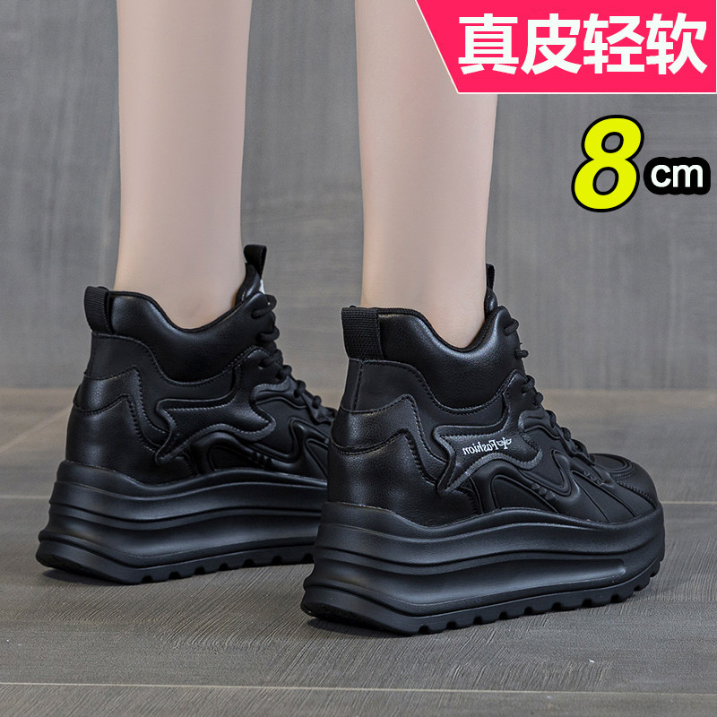 皮面厚底老爹鞋女2025新款冬季加绒内增高休闲运动高帮女鞋不累脚