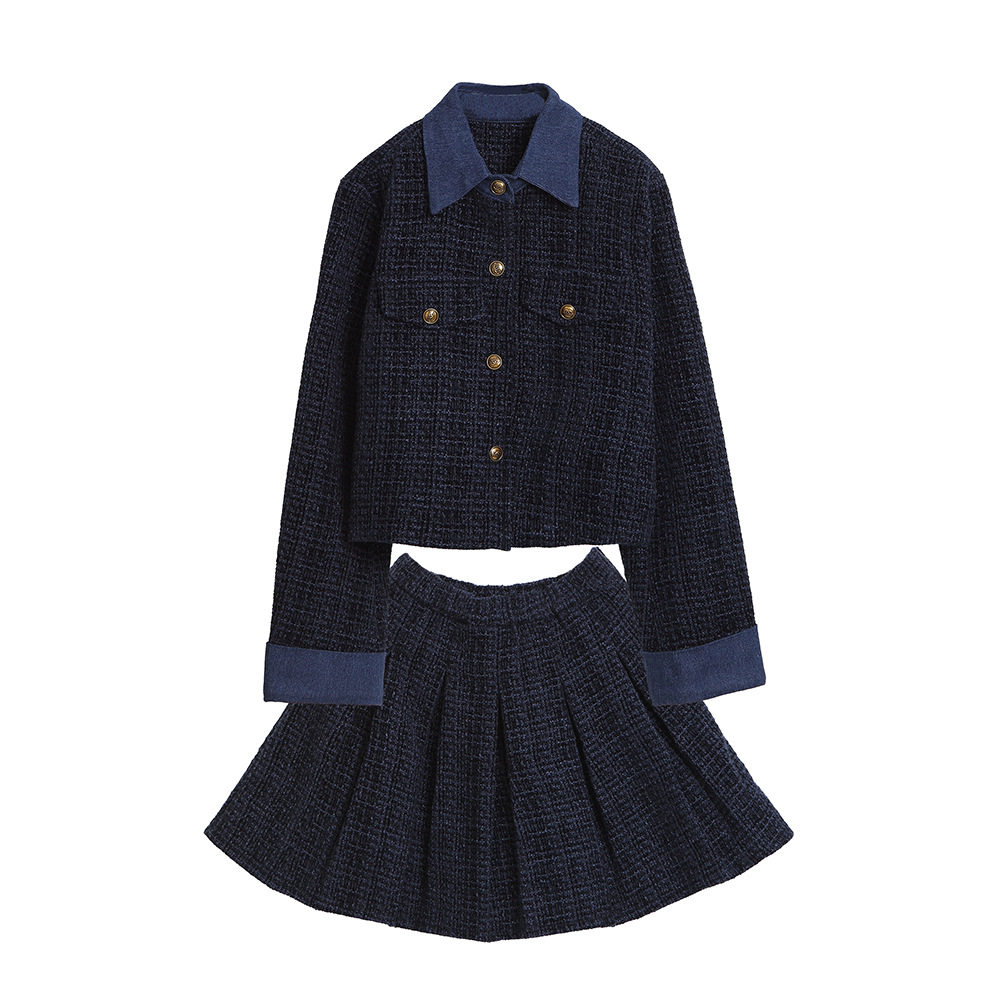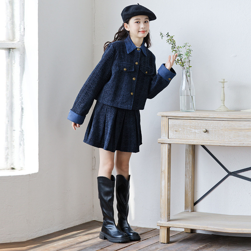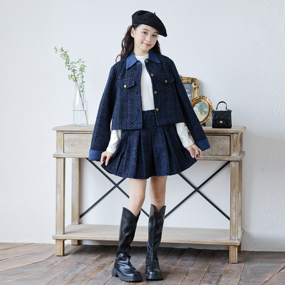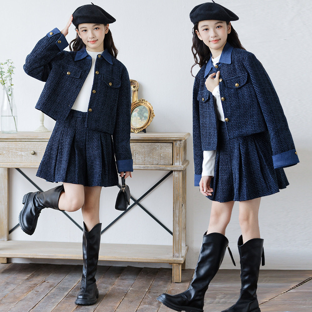 女童小香风套装洋气时髦秋冬新款女大童加厚外套百褶裙两件套裙子