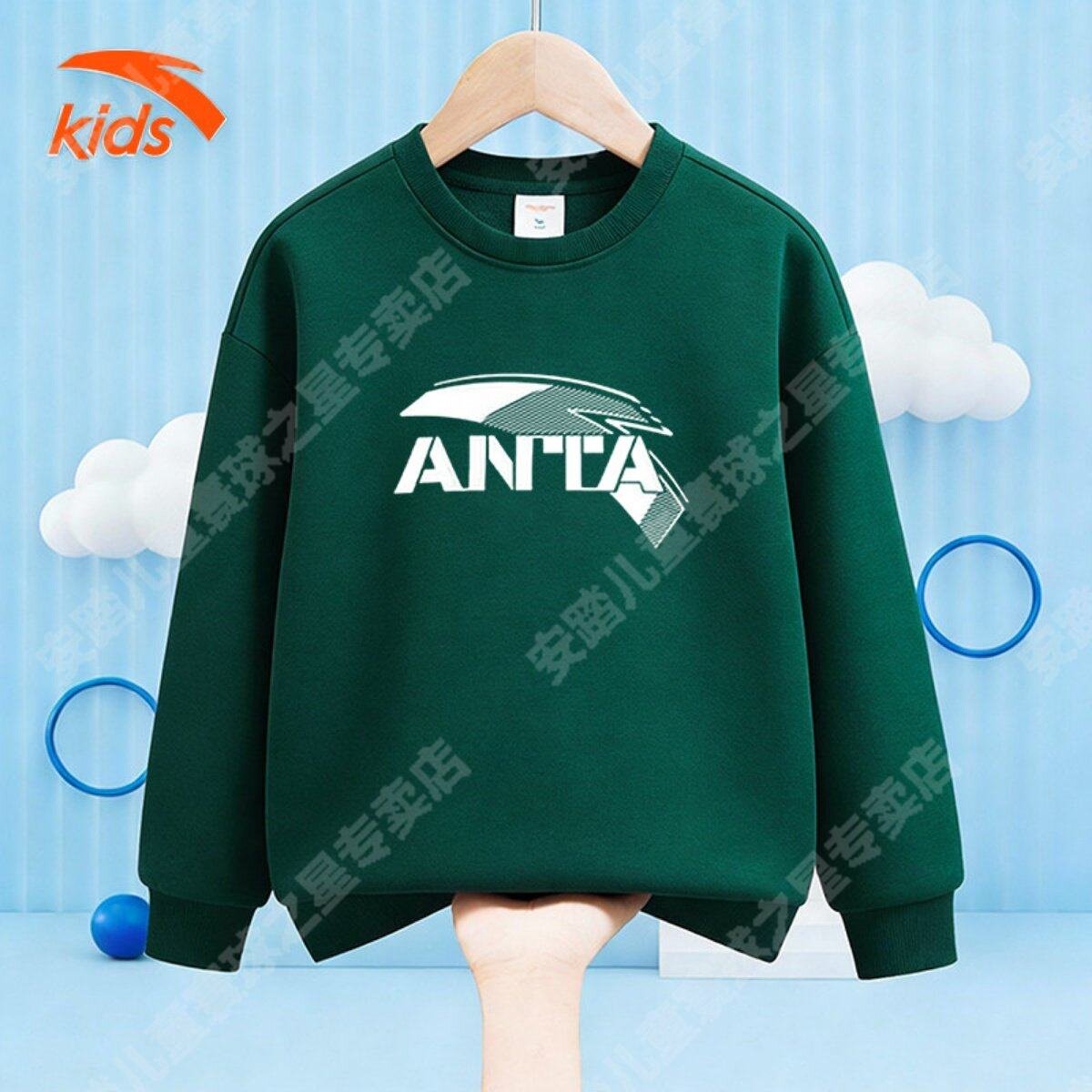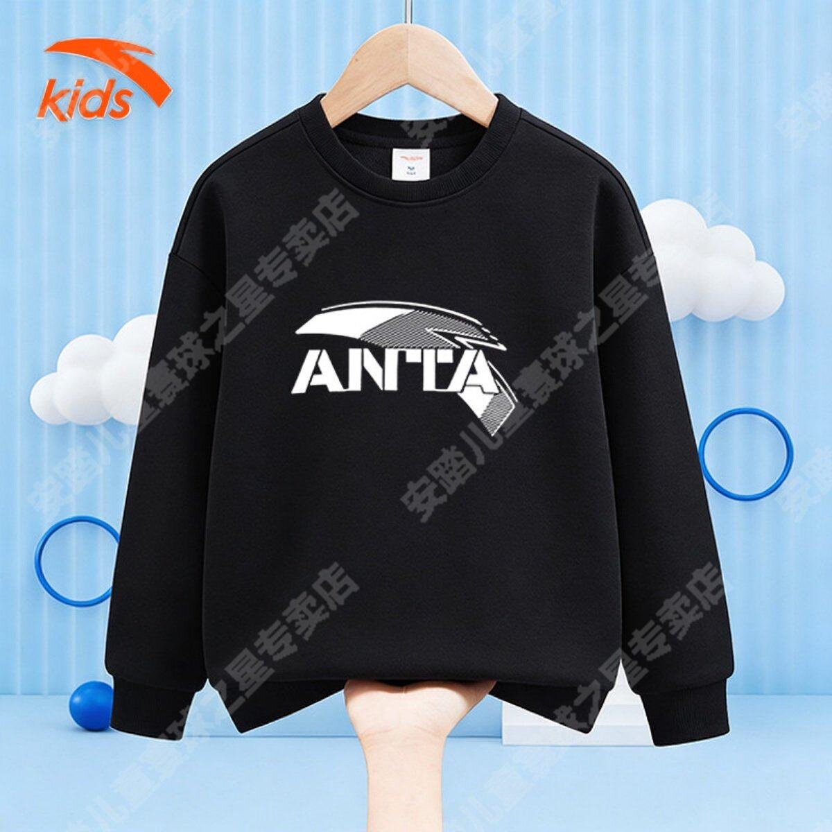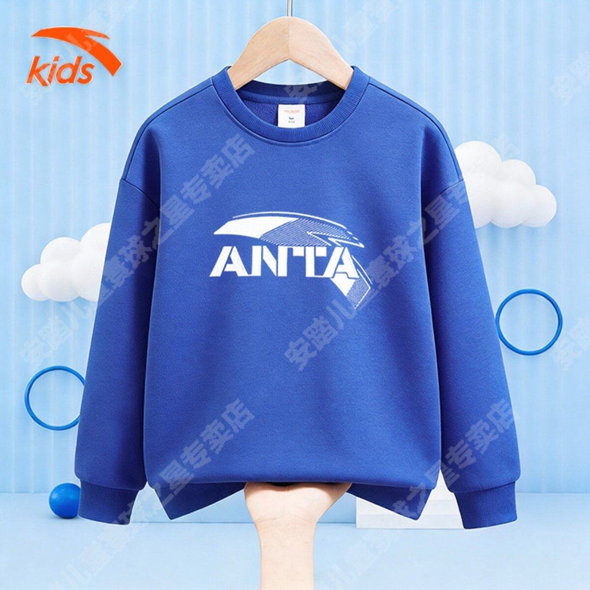 安踏儿童卫衣男孩2026春季新款棉质面料圆领长袖t恤女套头衫男童