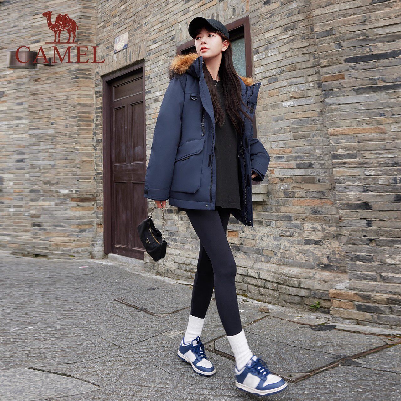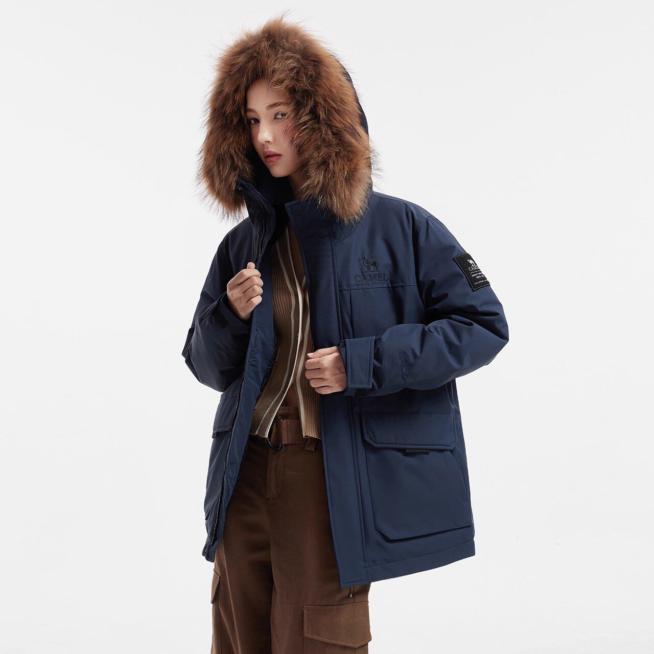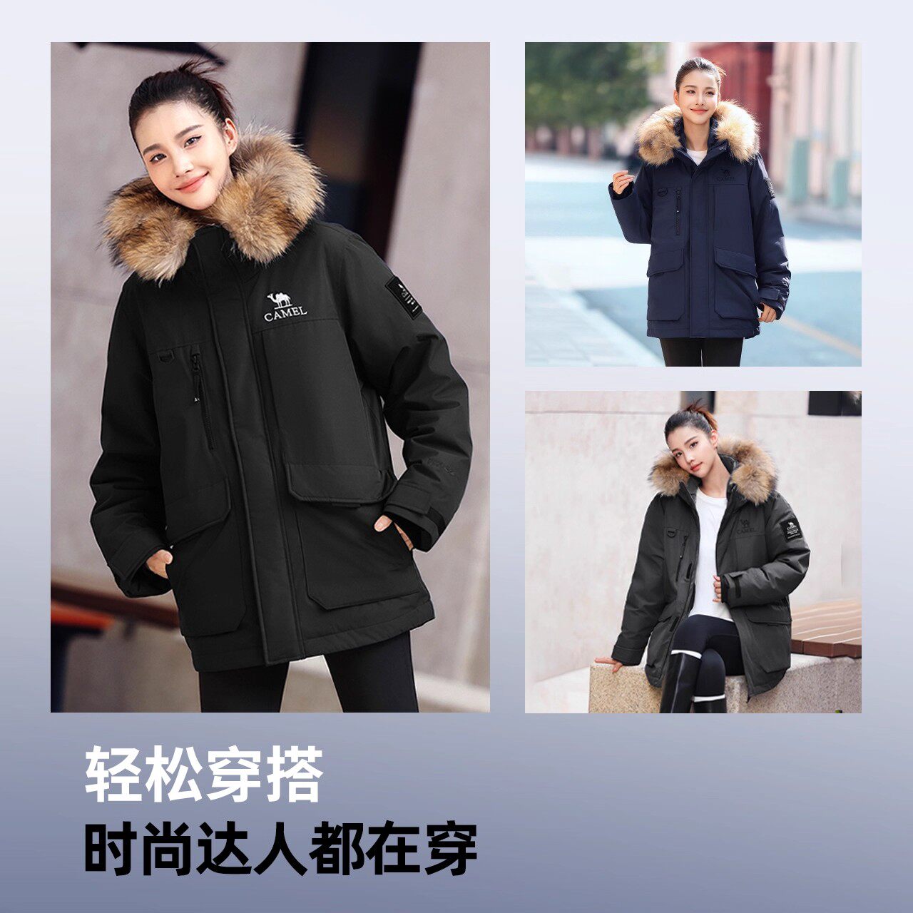 骆驼工装派克服女2026冬季新款户外加厚鹅绒羽绒服女款中长款外套