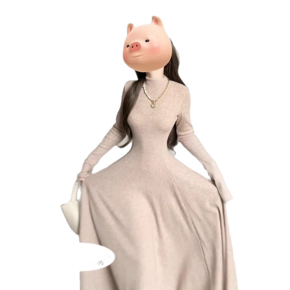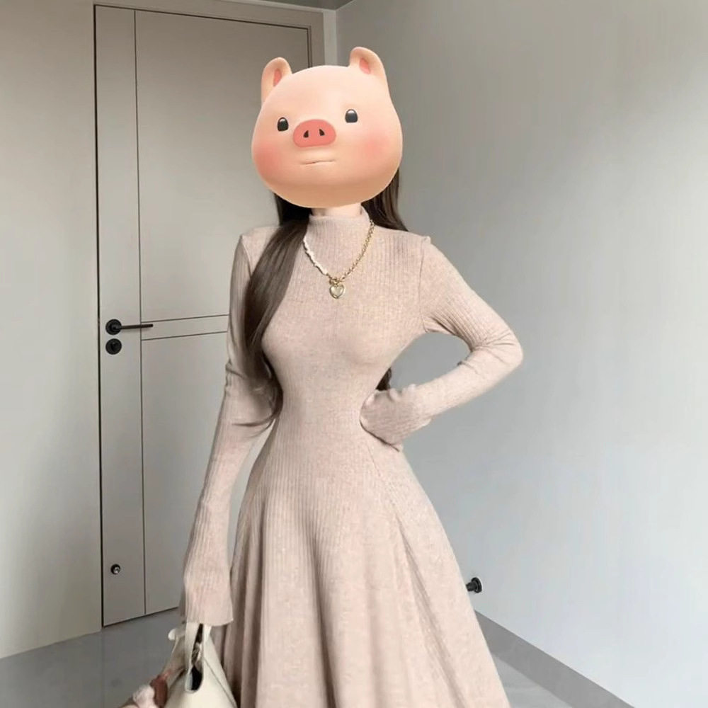 冬季加绒白色针织连衣裙冬装高级感加厚长款打底内搭长裙秋冬裙子