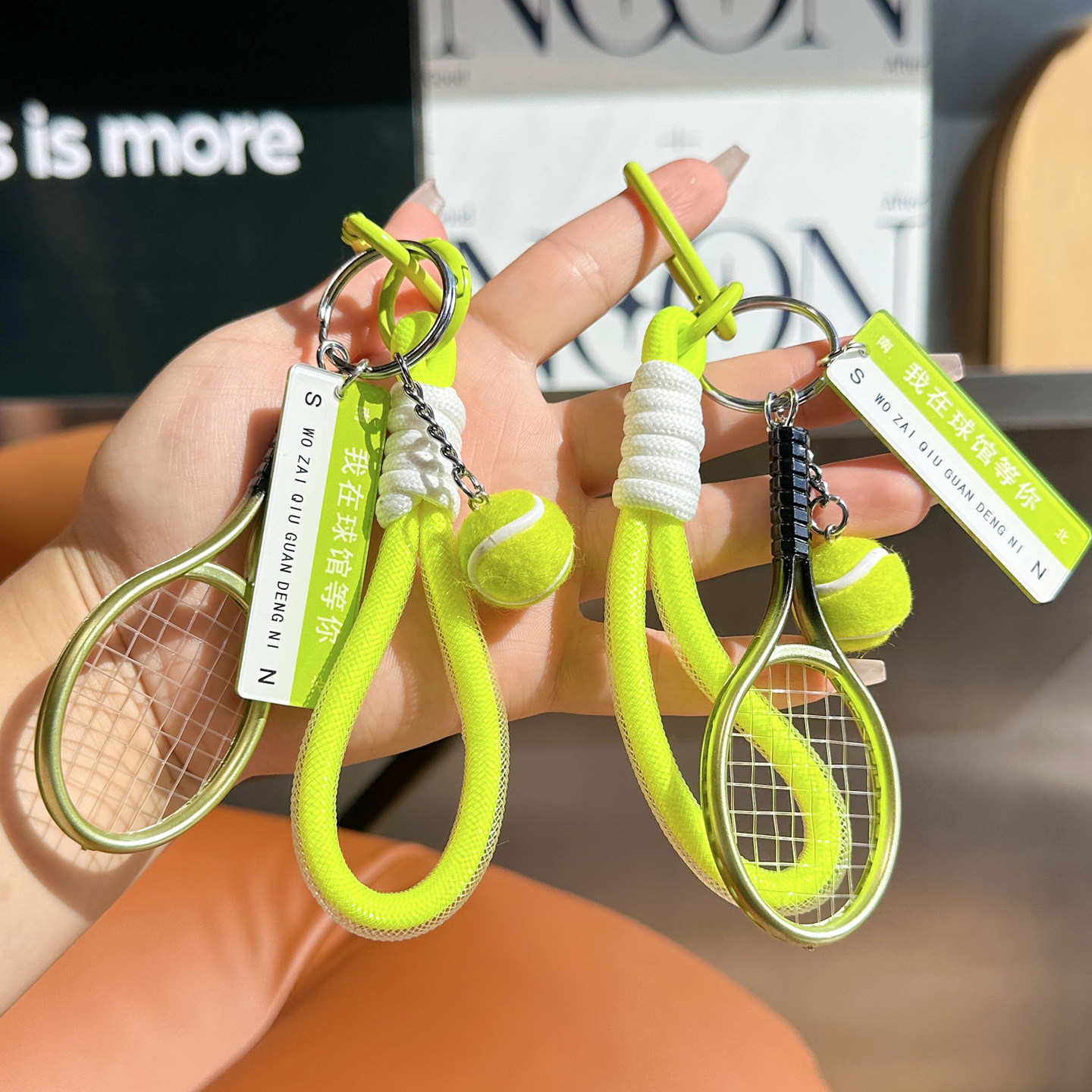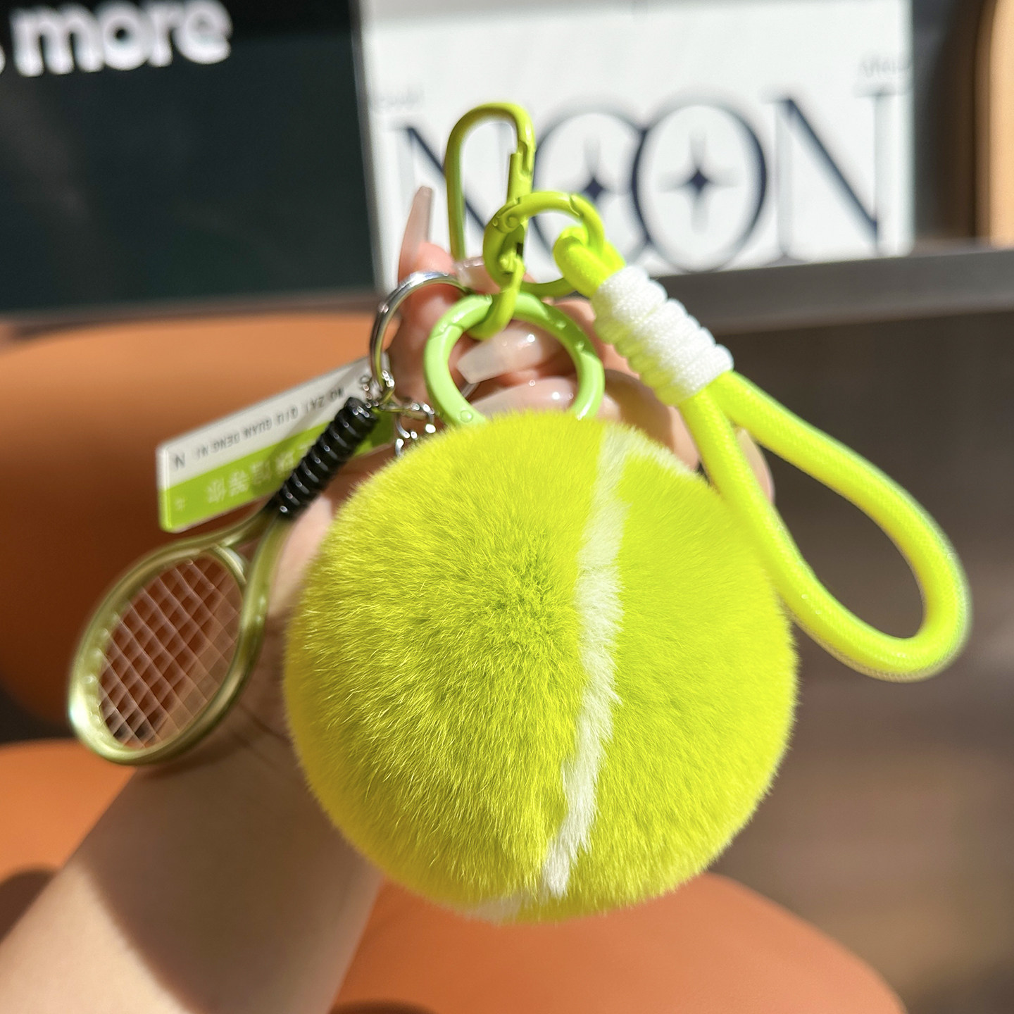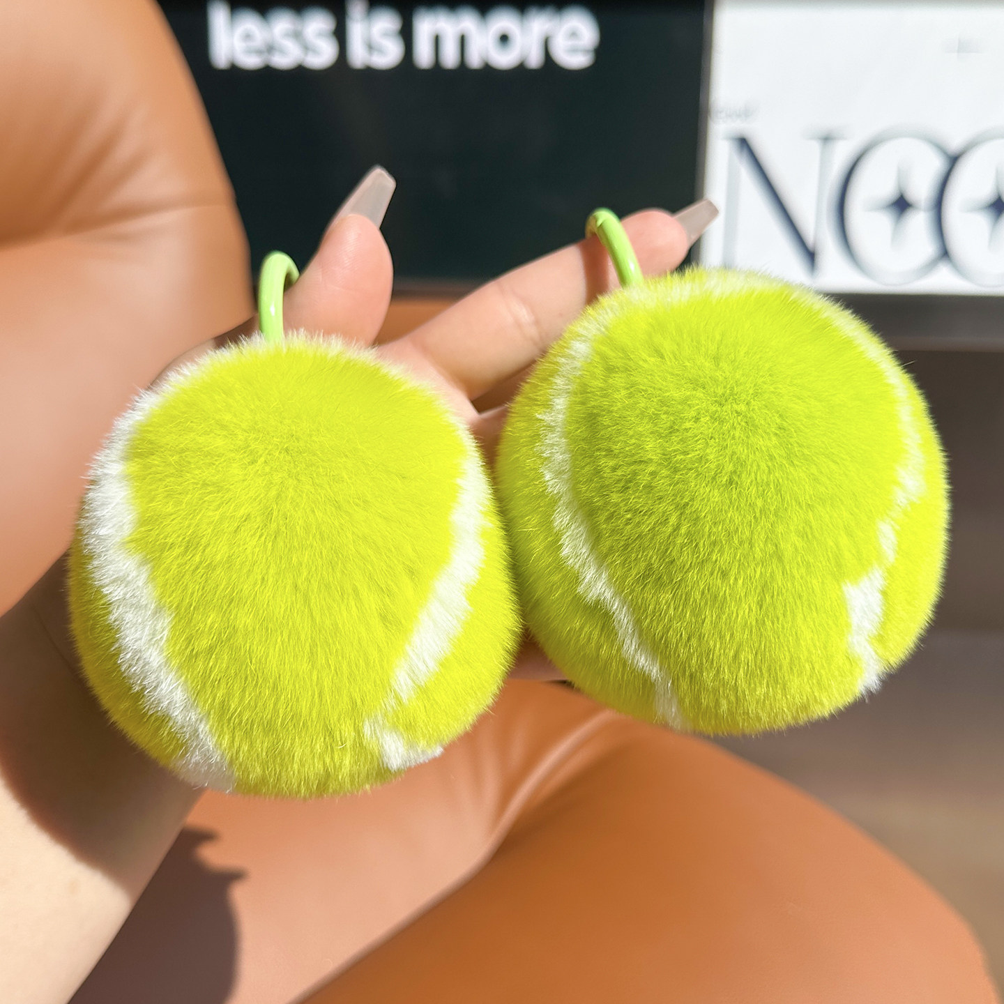 可爱真獭兔毛小网球汽车钥匙扣挂件ins网红包包毛绒球书包包挂饰