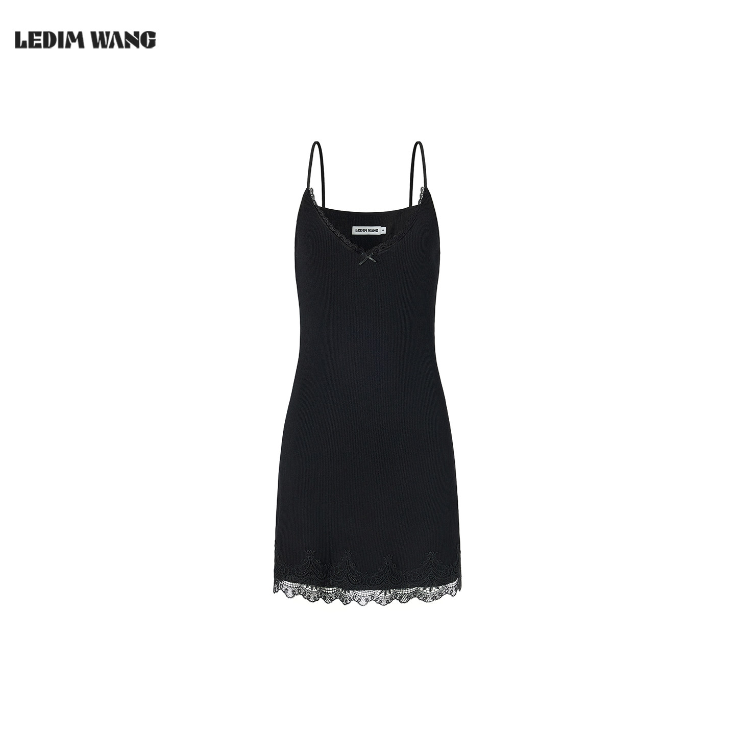 LEDIM WANG蕾丝针织吊带连衣裙女2026春新款黑色轻奢修身薄款短裙