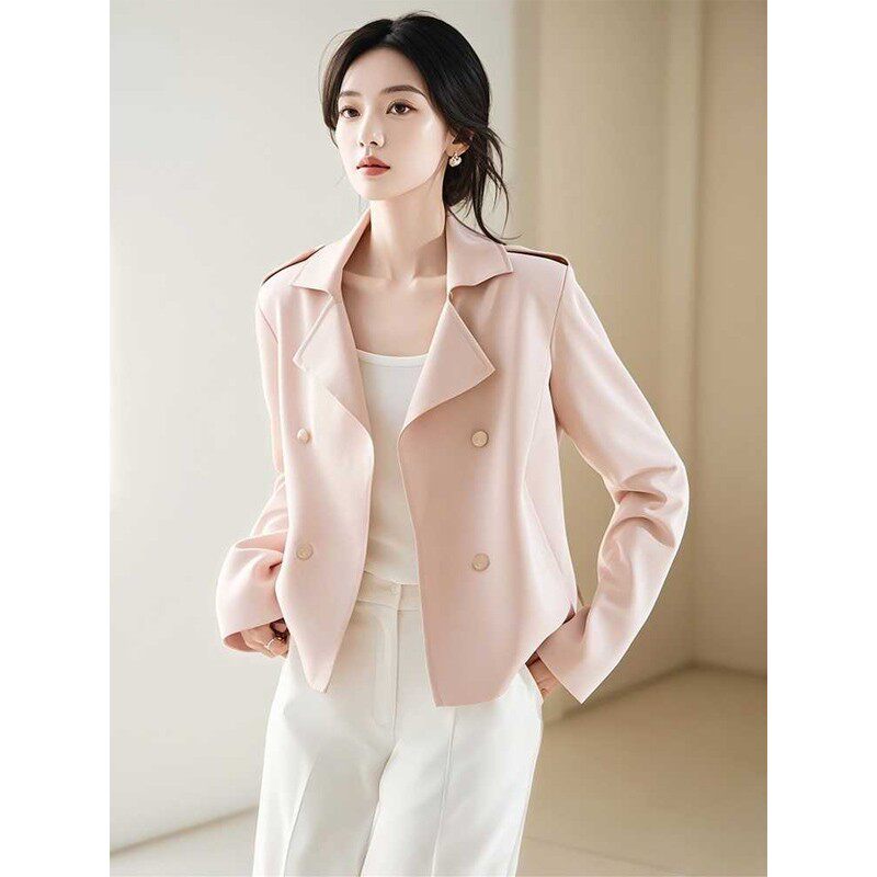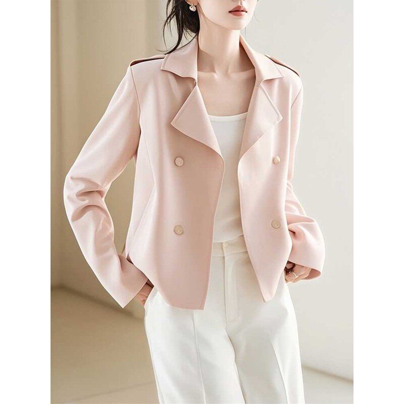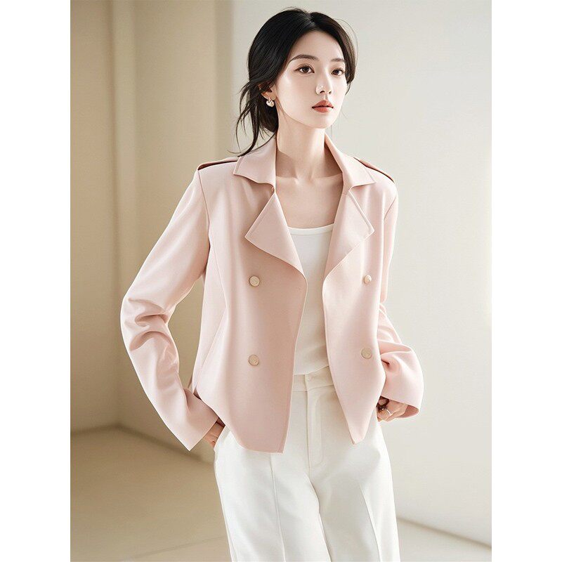 2026早春新款今年流行爆款韩系独特漂亮小个子粉色短款风衣外套女