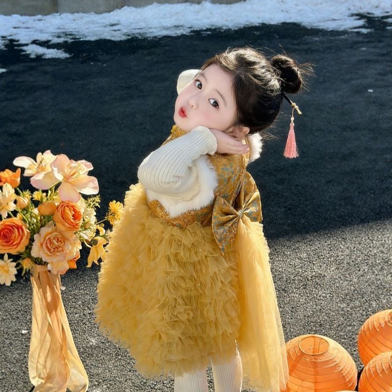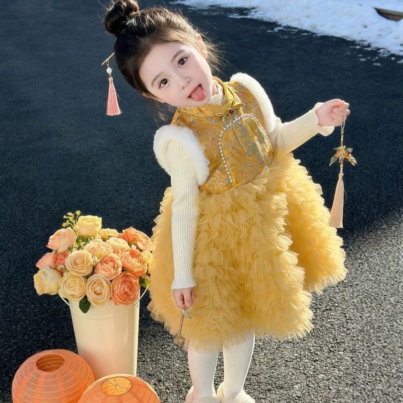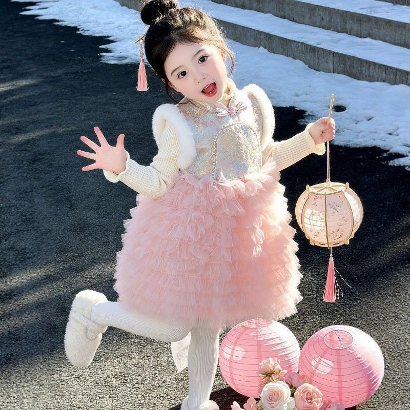 女童加绒连衣裙套装2026新款儿童洋气冬款裙子女宝宝冬装礼服公主