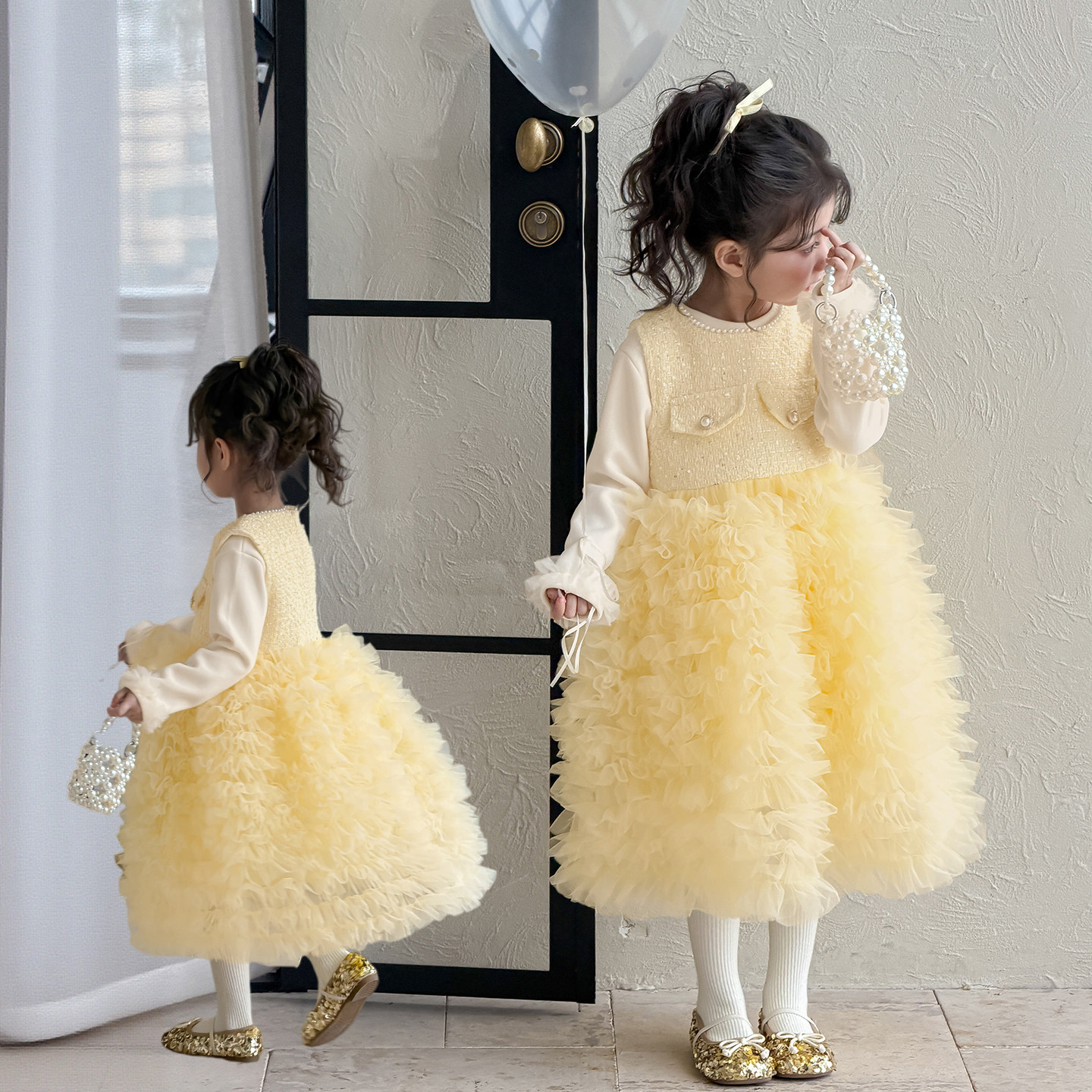 女童小香风套装冬装2026新款女孩新年衣服洋气时髦宝宝过年礼服裙