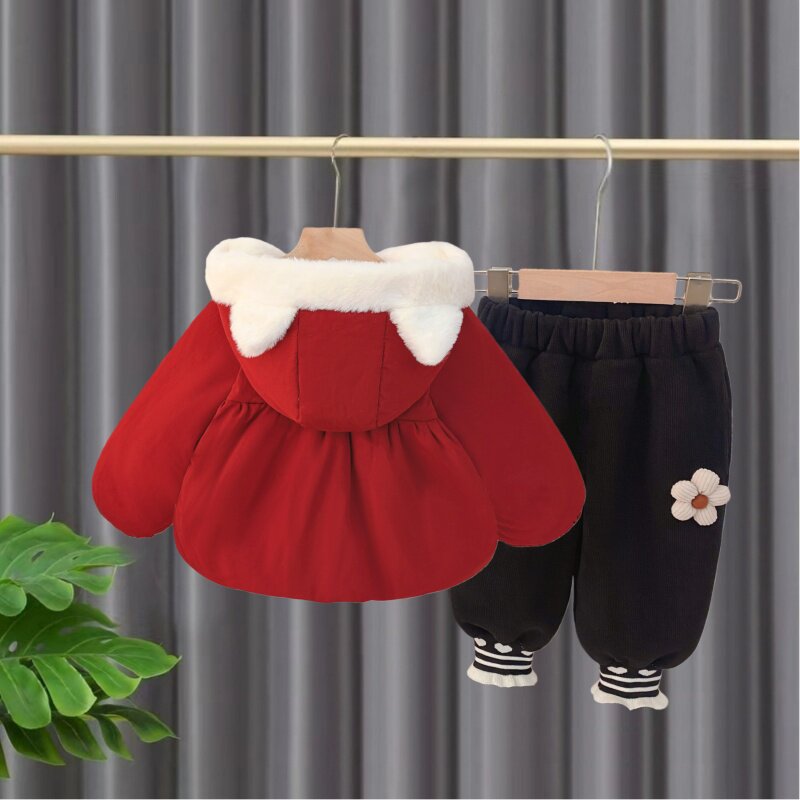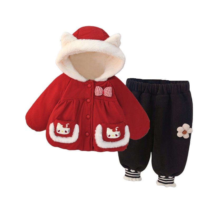 女童套装冬装加绒2026新款洋气儿童宝宝新年衣服婴儿加厚两件套潮