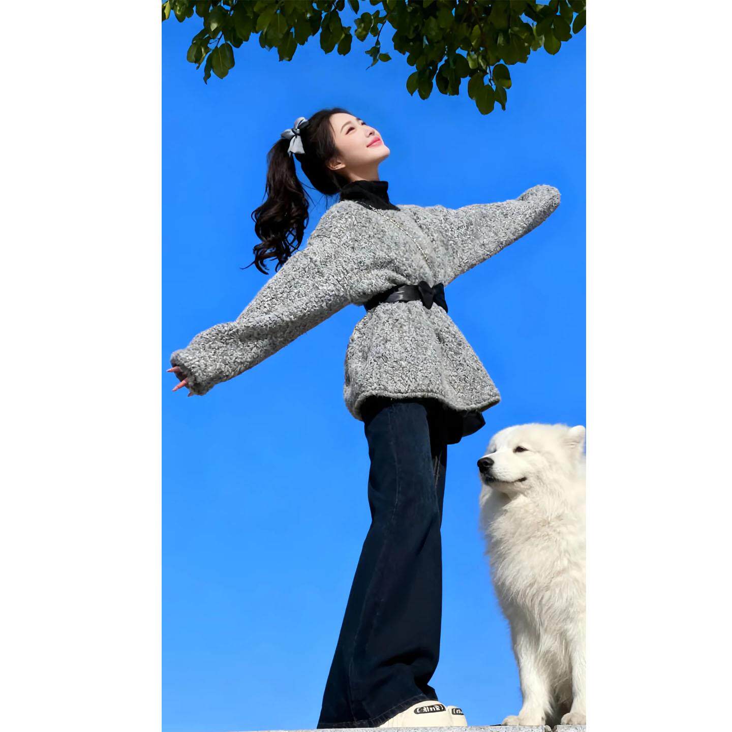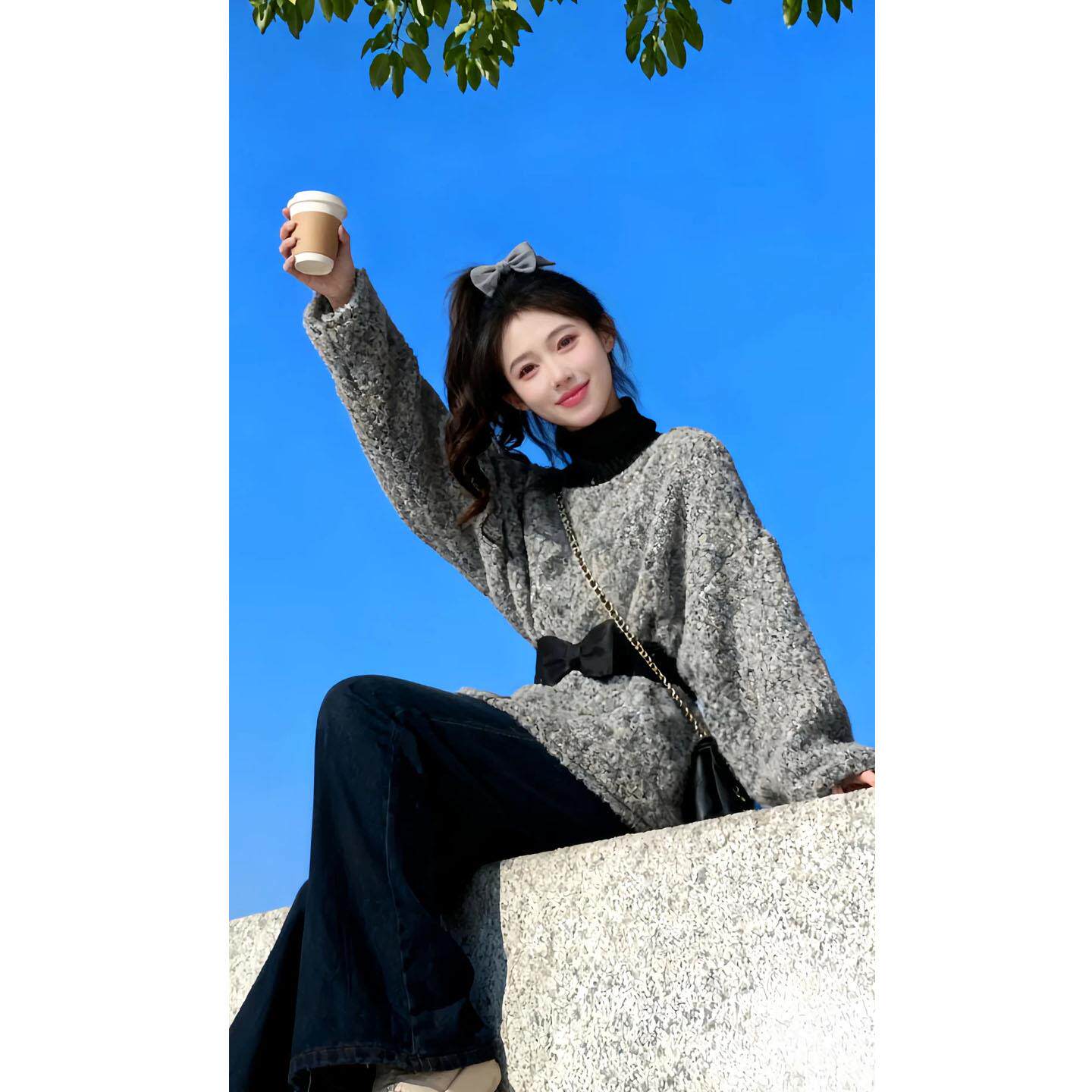 JOYIASS套装女2025新款冬装韩系慵懒收腰毛衣显瘦高腰阔腿牛仔裤