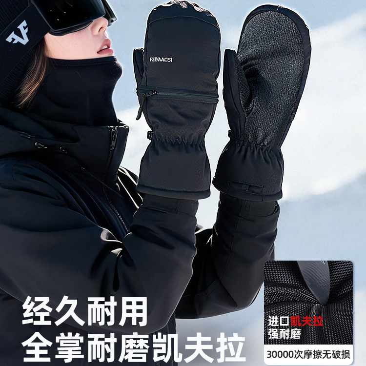 凯夫拉滑雪手套内置护腕的带内胆单板女专用闷子并指男专业可半脱