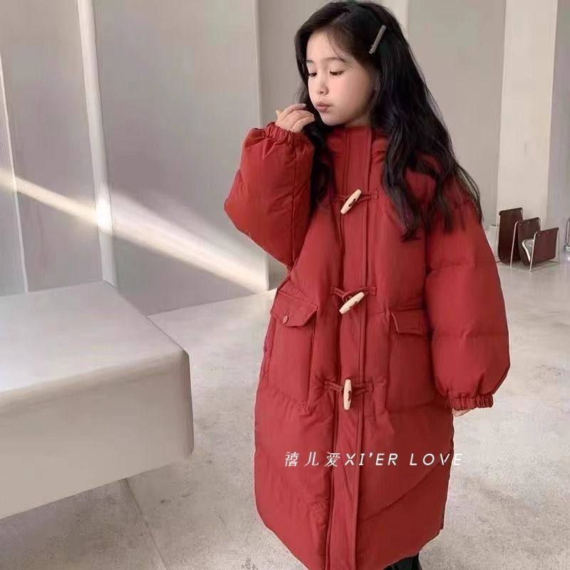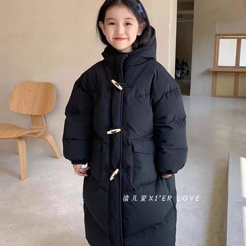 2025新款时髦外套女童中长款过膝棉服洋气加厚棉袄休闲冬装中大童