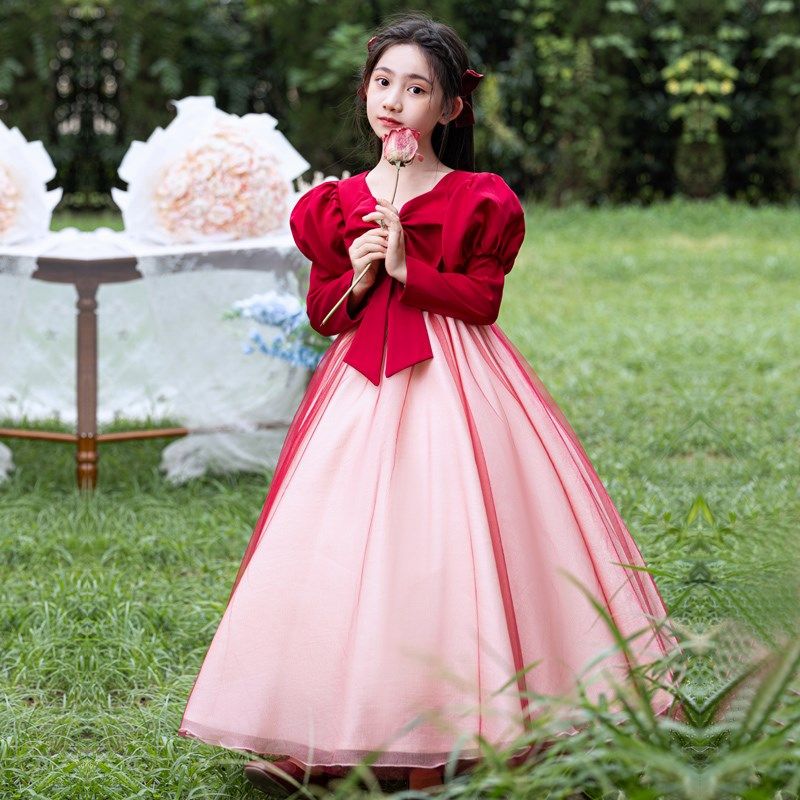 公主裙女童生日宴晚礼服2025新款红色轻奢小众高端儿童连衣裙高级