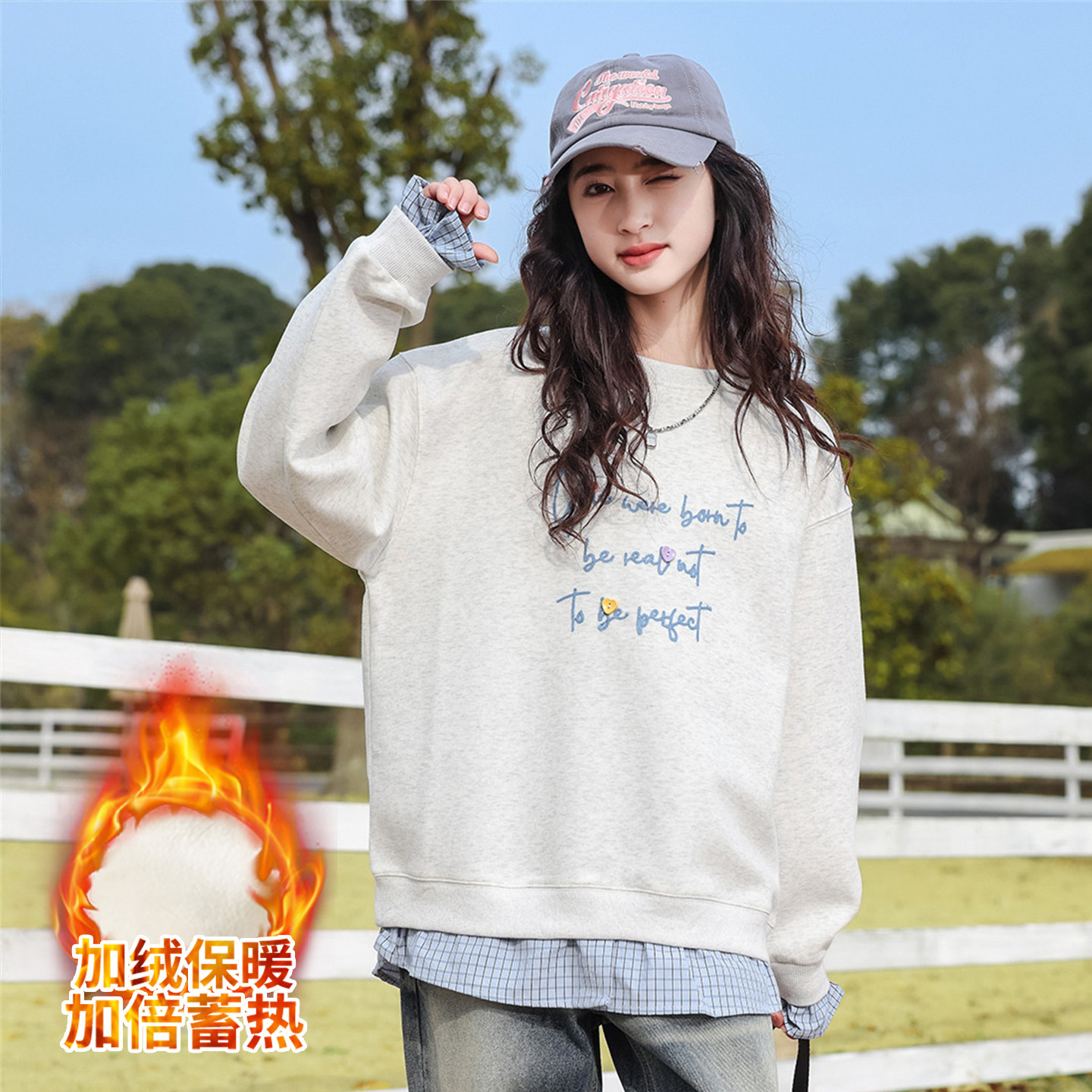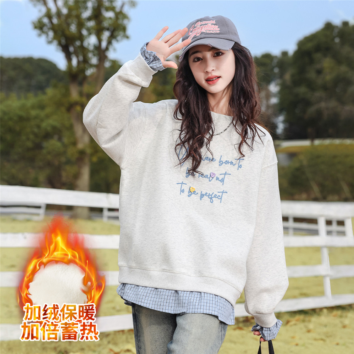 女童加绒卫衣假两件秋冬2025新款洋气时髦大童初中生女孩冬装上衣