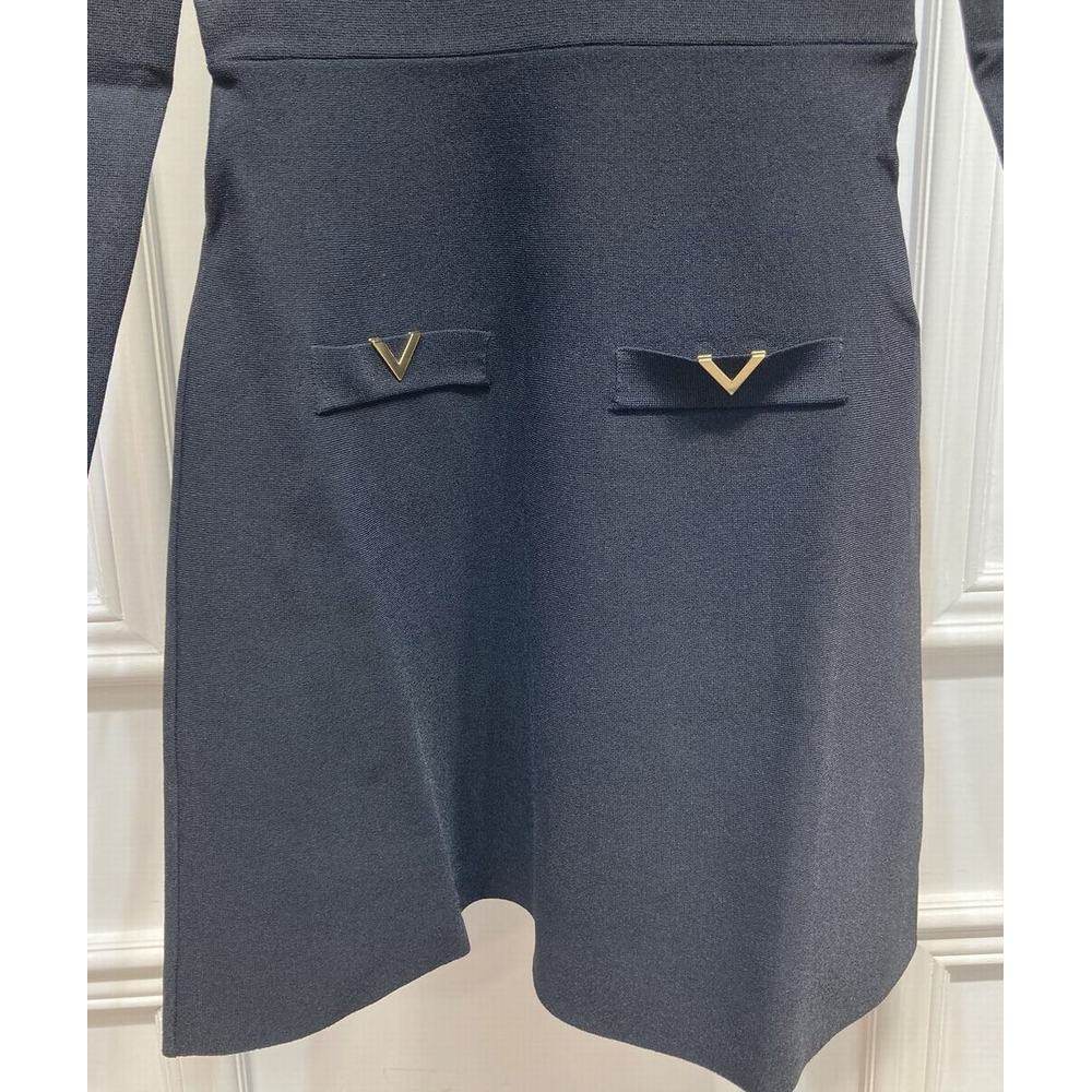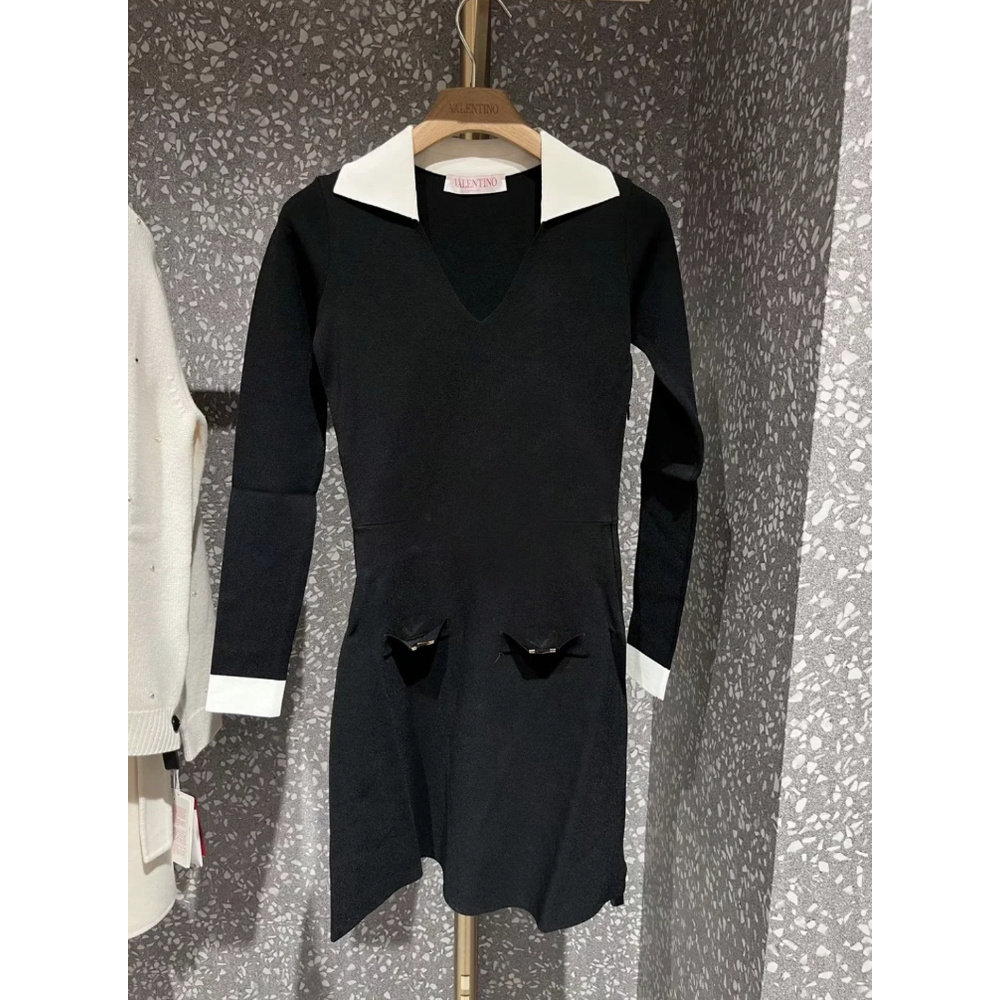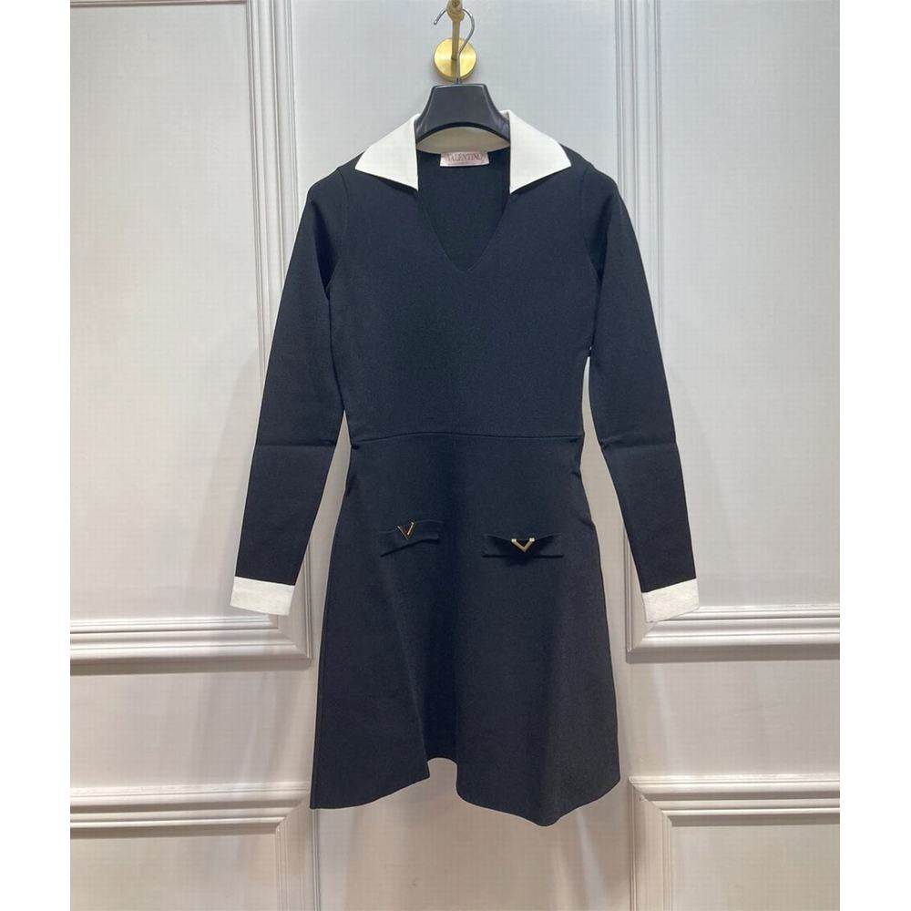 1h可退 香港直邮valentino 华伦天奴 女士 特 黑色针织长袖连衣裙