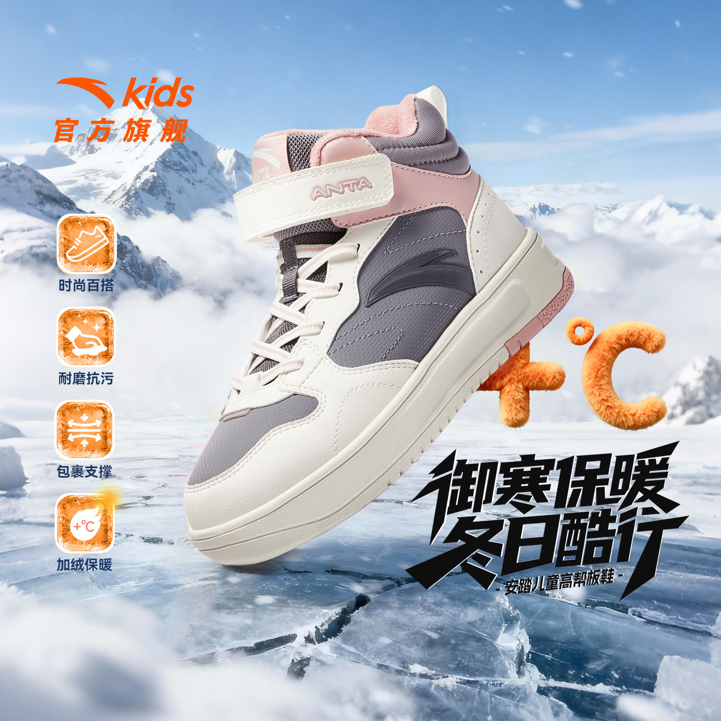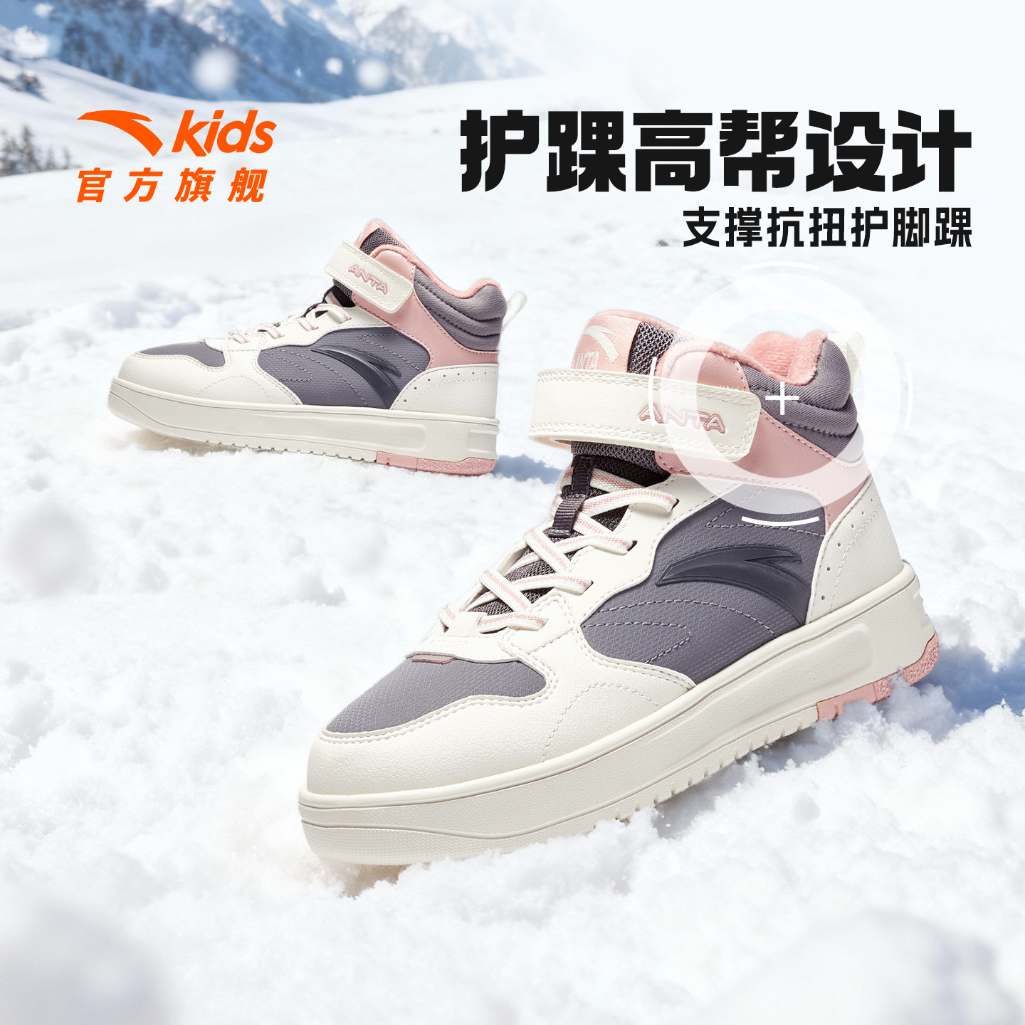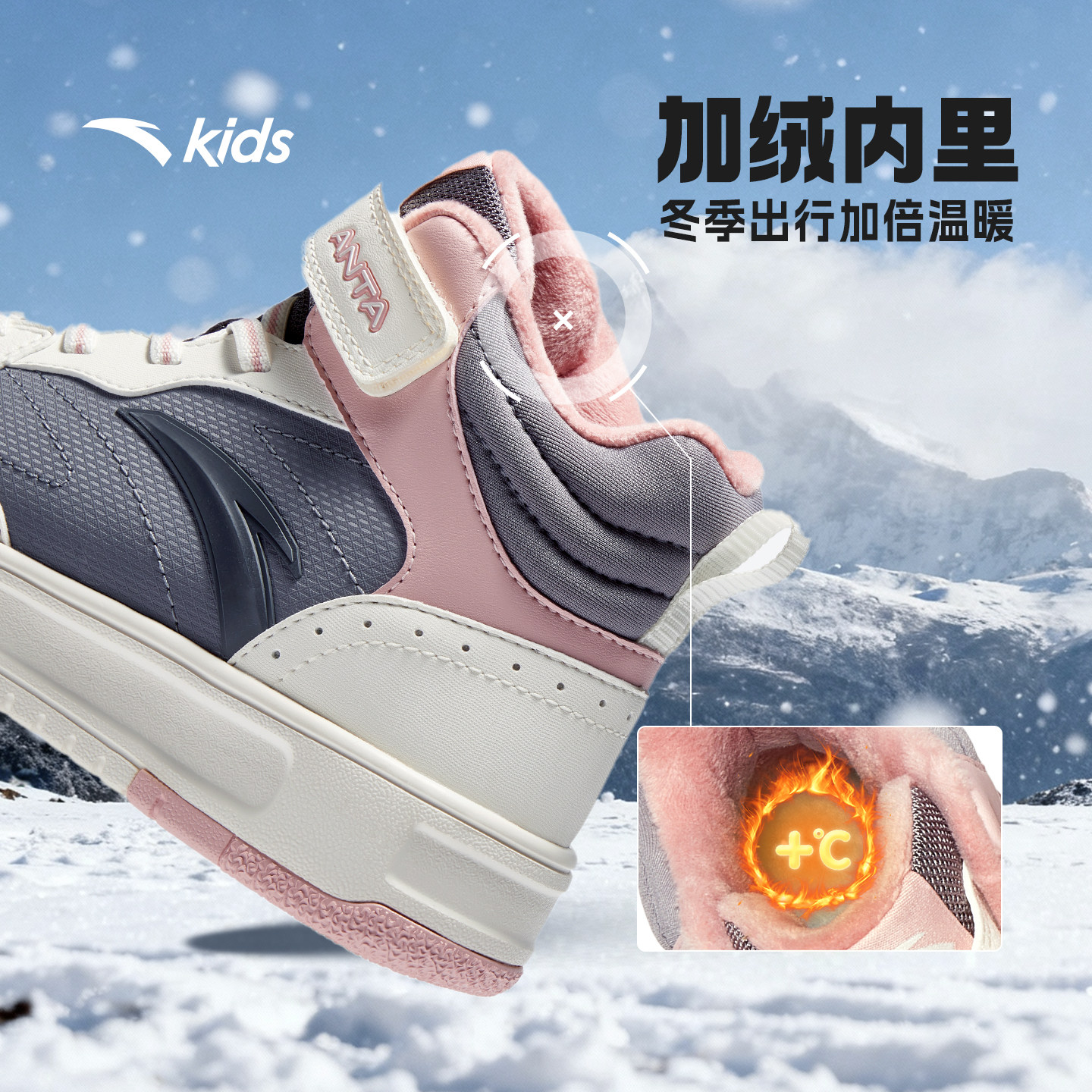 安踏儿童鞋女童二棉鞋2025秋冬新款运动鞋保暖中大童鞋子加绒板鞋