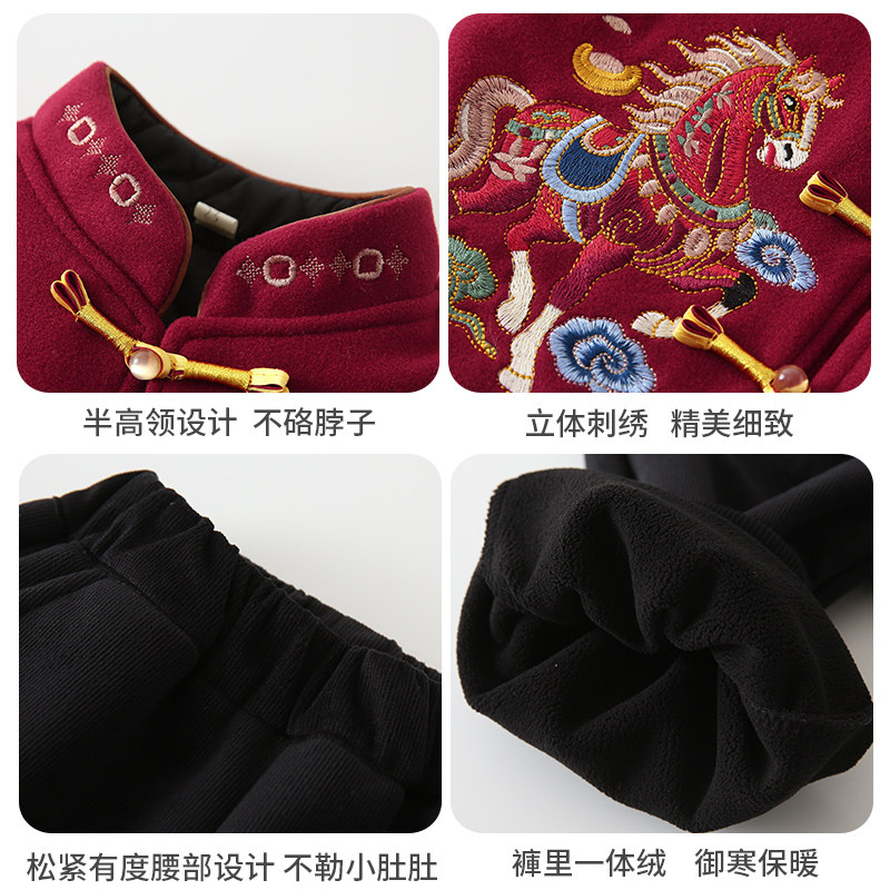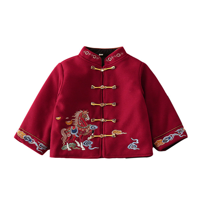 马年拜年服男童红色外套中国风儿童喜庆过年衣服宝宝棉袄儿童新年