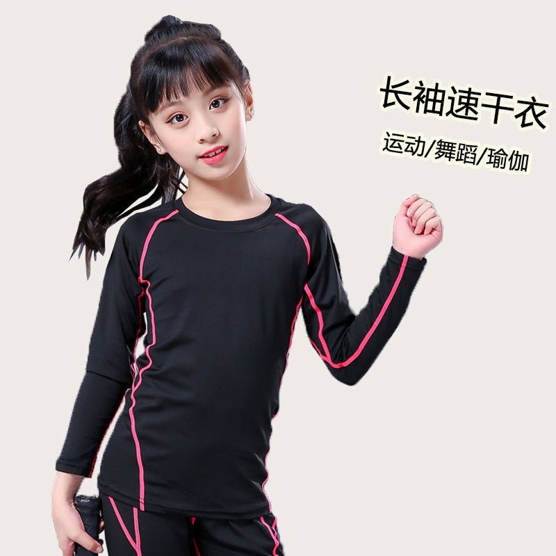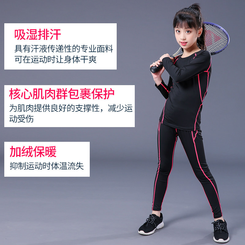 儿童紧身衣套装训练服女童瑜伽裤冬天女孩12羽毛球打底裤男女透气