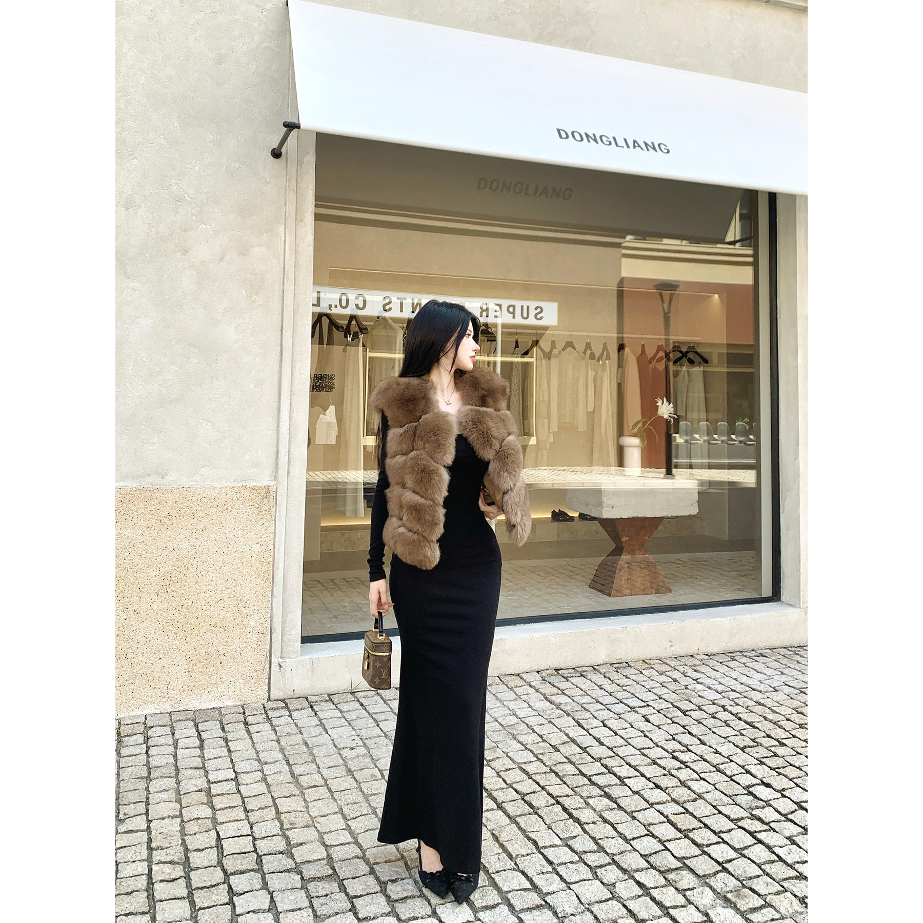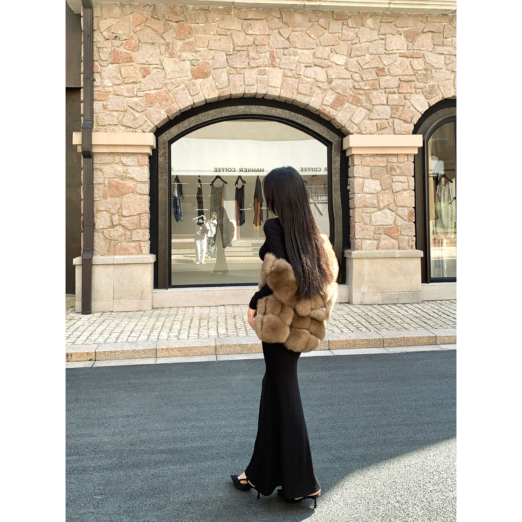 灰尘邓邓 黑色长袖连衣裙女2025秋冬新款包臀裙性感长裙方领裙子