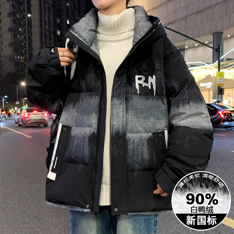 青少年羽绒服冬季2024新款男孩初中学生帅气大童90白鸭绒加厚外套