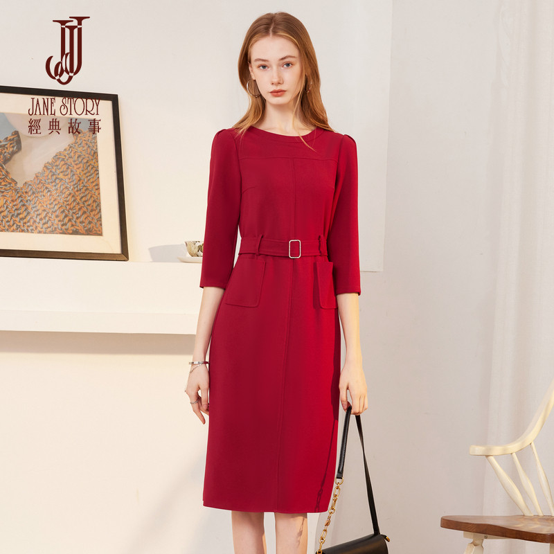 2026新款春秋正式场合红色连衣裙女高端小个子简约气质修身长裙