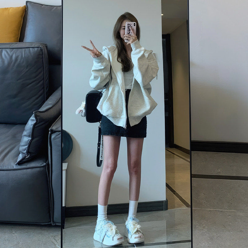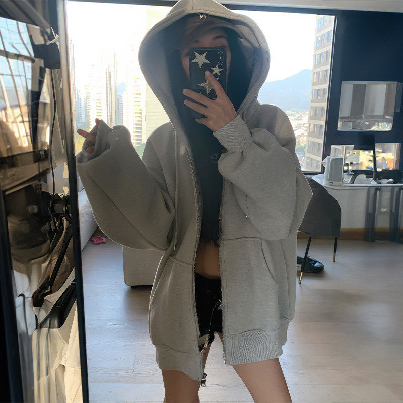 藏青色卫衣外套女秋冬季加绒加厚2026新款爆款韩系早春拉链上衣