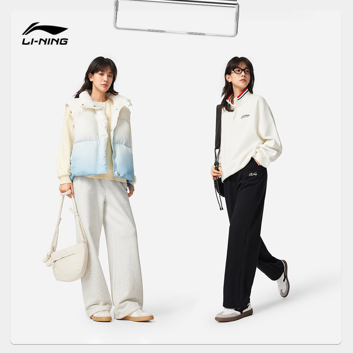 李宁运动服 运动潮流系列 女款亲肤舒适柔软宽松直筒卫裤休闲长裤