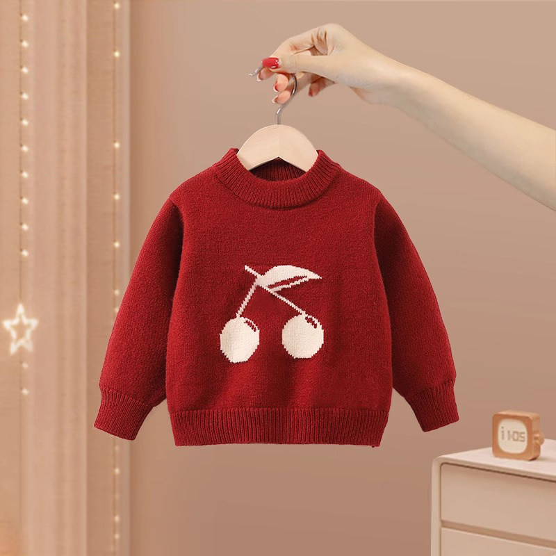 女童毛衣秋冬季2025新款宝宝冬装上衣新年红色加厚保暖儿童针织衫
