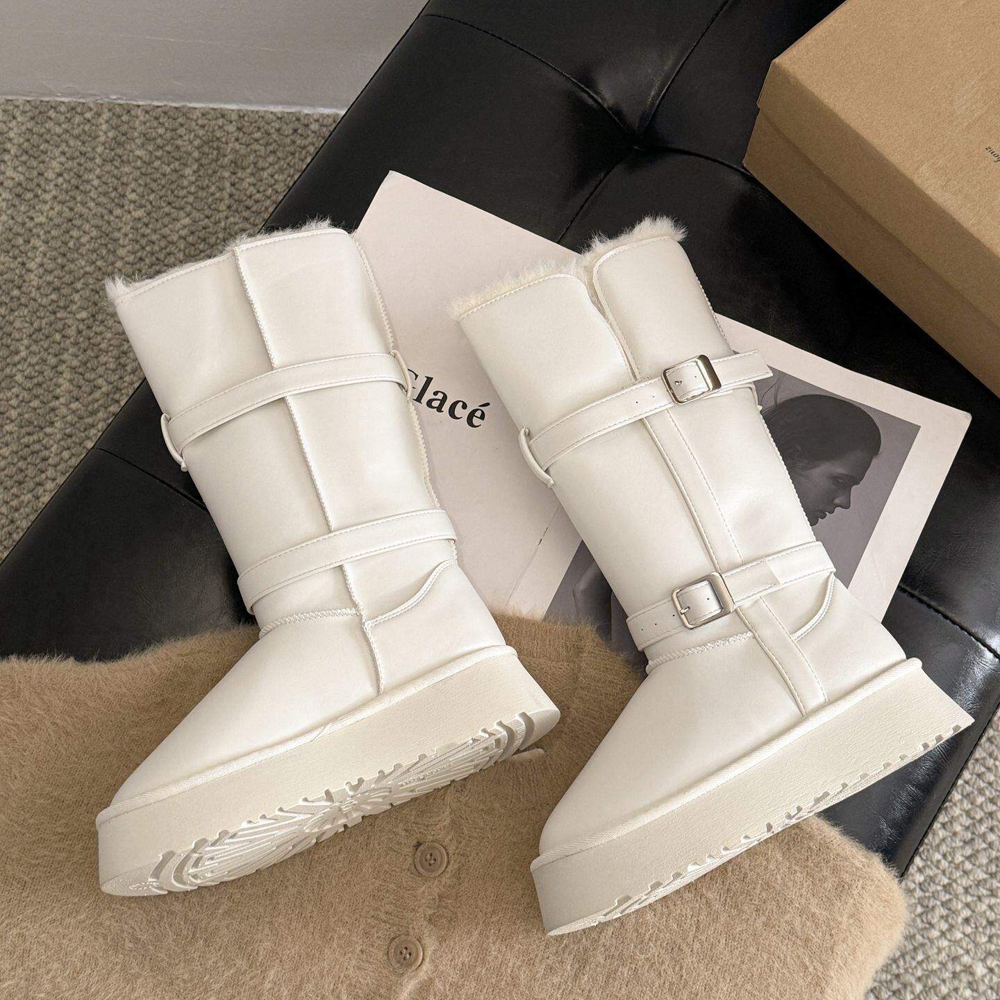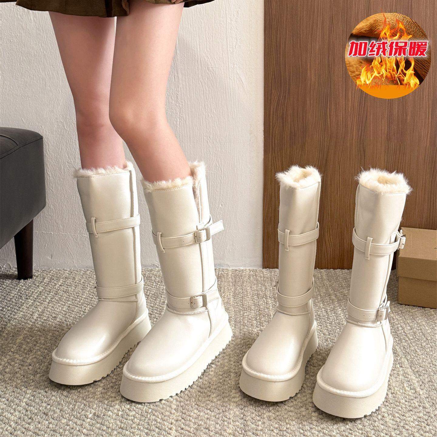 品牌真皮长筒加绒骑士雪地靴女款冬季哈尔滨户外防寒保暖白色靴子